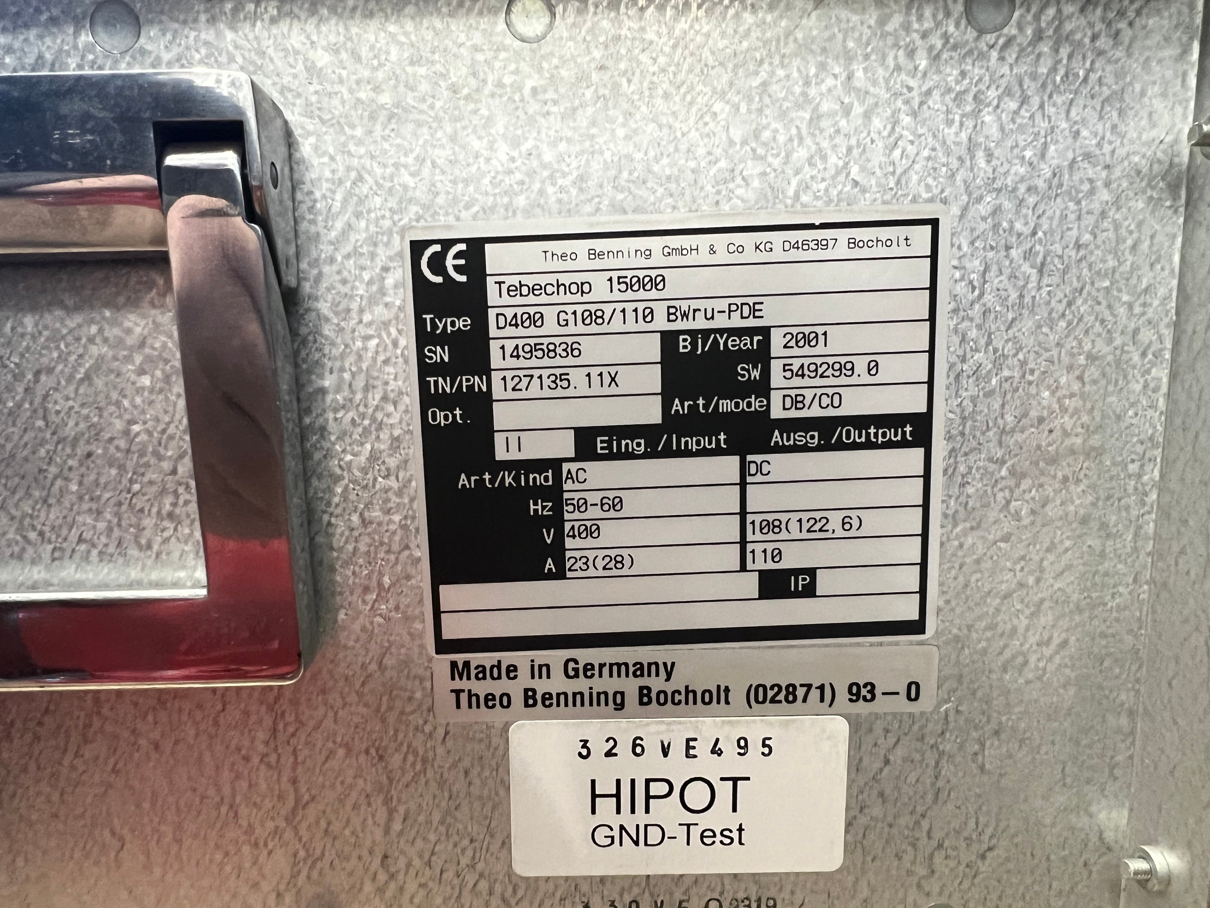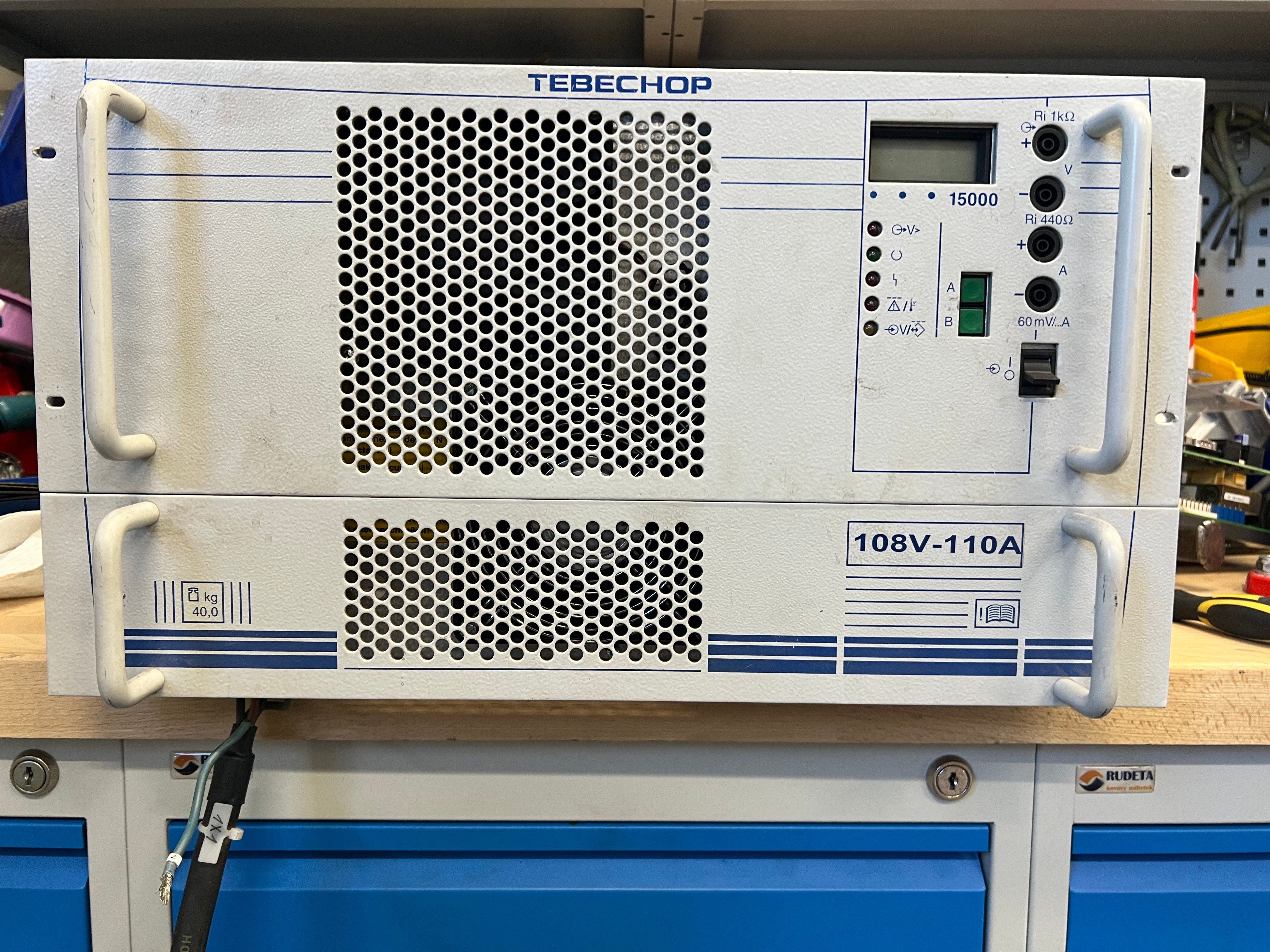 Nabízíme plně funkční zdroj Benning s usměrňovačem 110V/100A. Vstupní napětí je 400V AC, výstupní napětí nastavitelné mezi 95 a 140V DC. Zdroj je vhodný pro různé aplikace a je k dispozici za cenu 5 000 Kč.