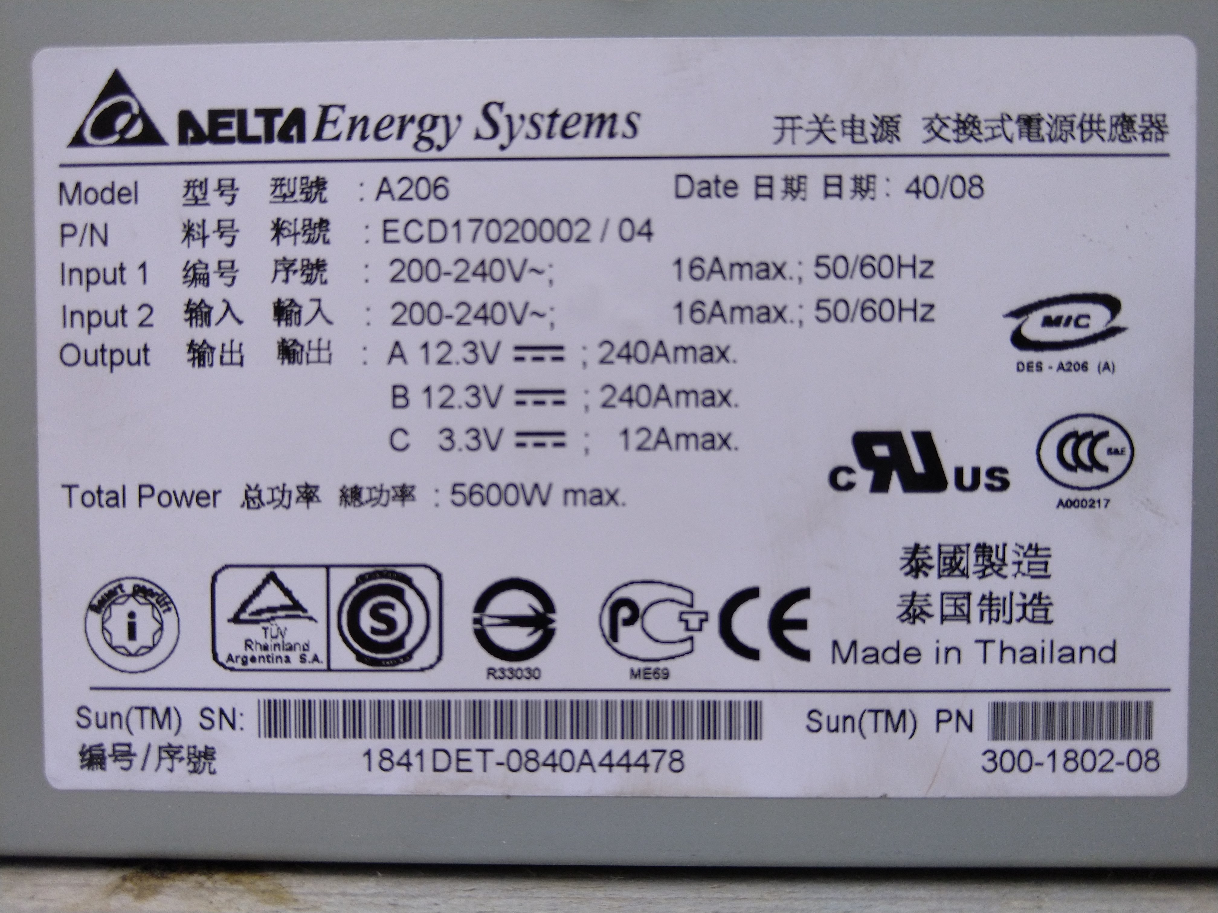 Vstup 2 X 230V AC , výstup 12,3V 2x240A DC