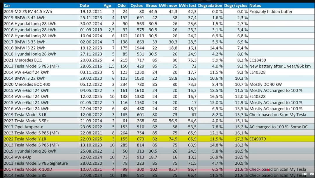 Koukám, že Tesly jsou tam prakticky jedinný s použitelným dojezdem, takže určitě používali i rychlonabíječky. EV s 22kW baterkou je něco jako invalidní vozejk a určitě se nabíjeli jenom minimálním proudem ze zásuvky. Tohle jsou údaje posbíraný z BMS v nějakém recyklačním centru a vůbec nic to nevypovídá o poměru cena/výkon.