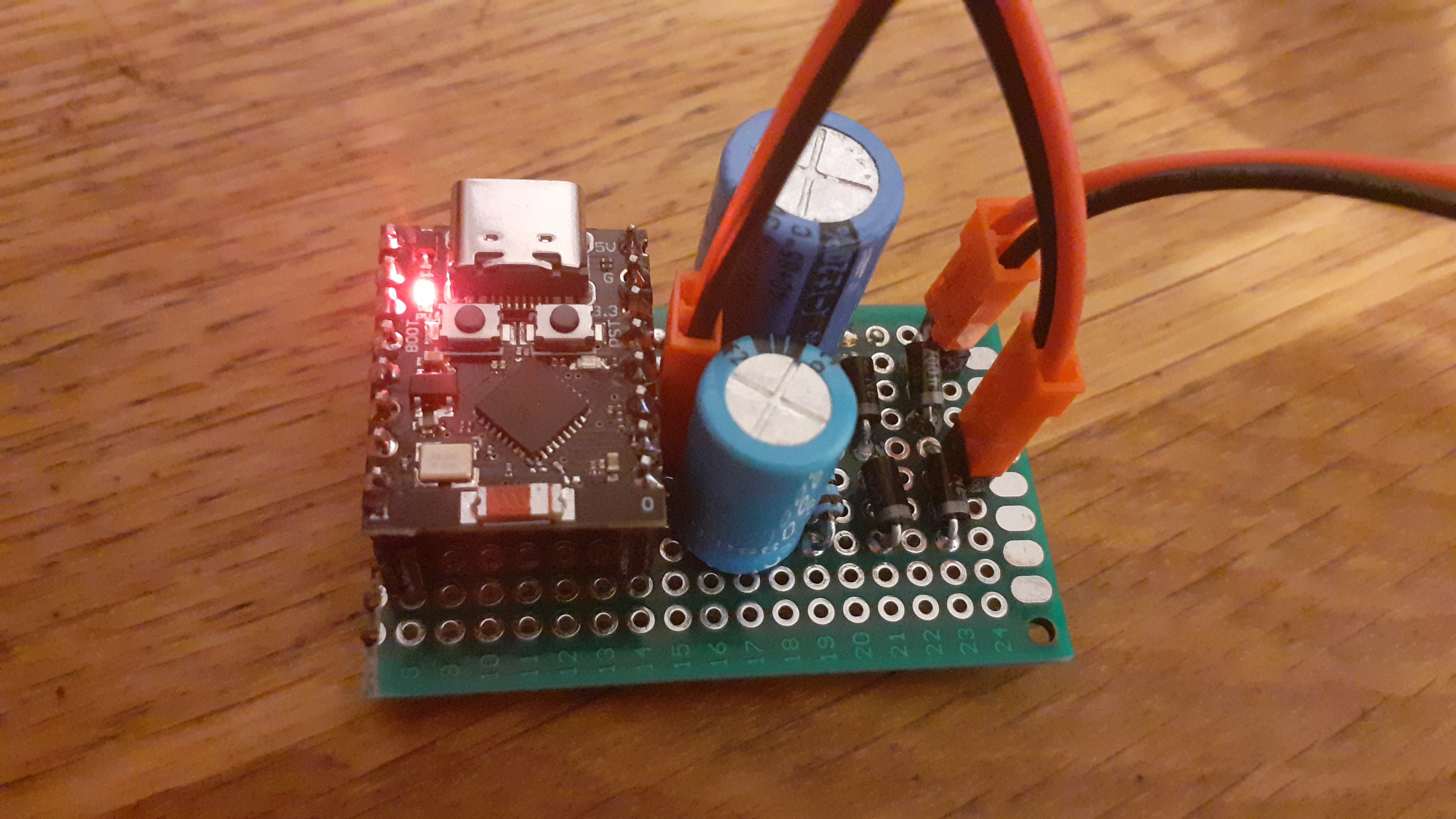 Trochu som musel laborovat s prudovym transformatorom a meranim pomocou AD prevodniku ale uz to funguje. Riesenim bolo mostikove usmernenie hned na prudovom vystupe transformatora (minimalizuje to ubytky na diodach) az nasledne zatazenie odporom. Tym som ziskal jednosmerne napatie ktore sa lahko monitoruje.