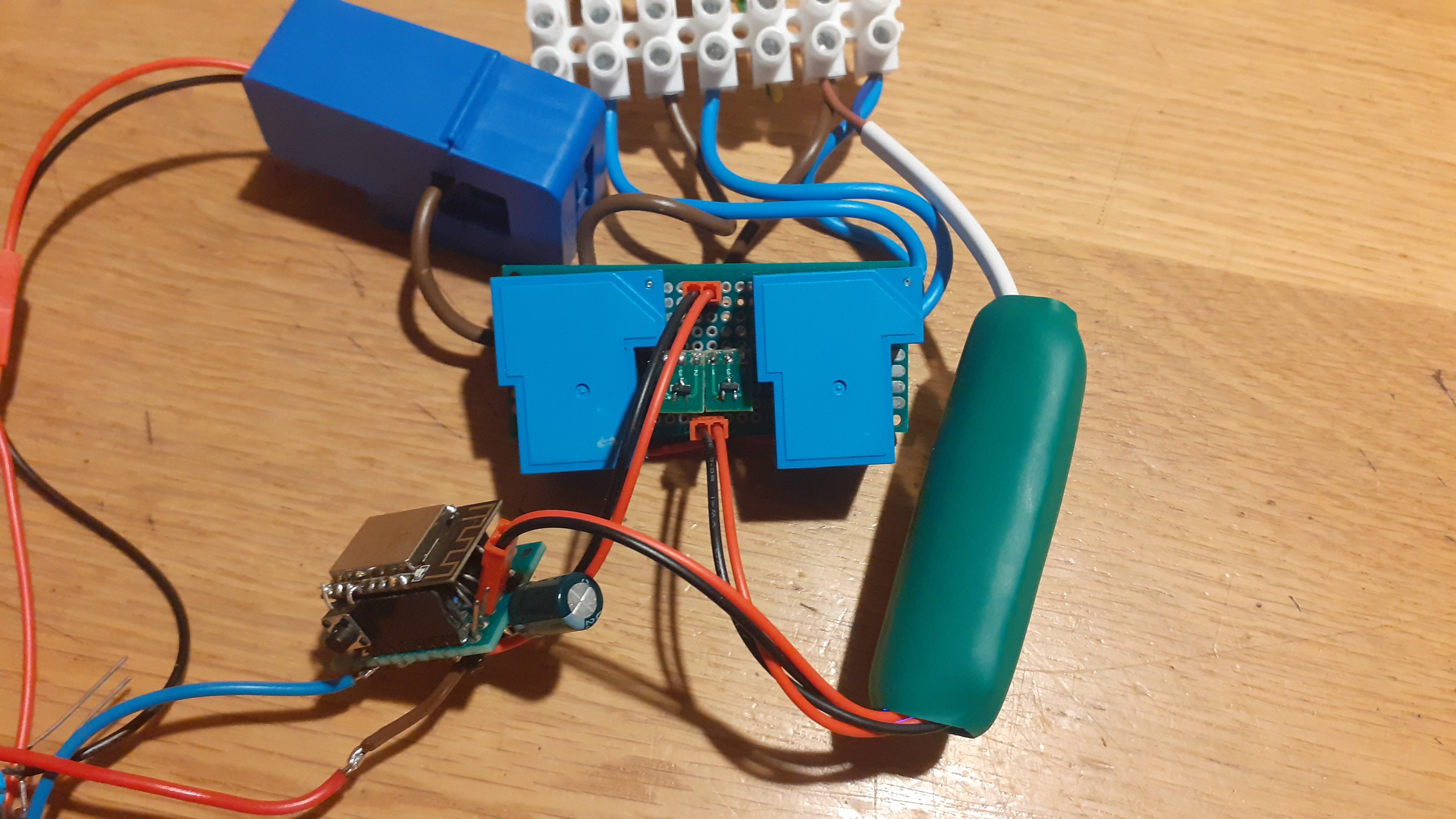 Toto je zatial provizorne ale funkcne zapojenie, trochu som musel laborovat s prudovym transformatorom a meranim pomocou ADC pinu ESP8266 ale uz to funguje. Este sa ukaze ake budu nabehy systemu ci to nebude zamrzat kedze je to napajane s FVE. Pokial by to bolo problematicke budem to krmit zo siete.