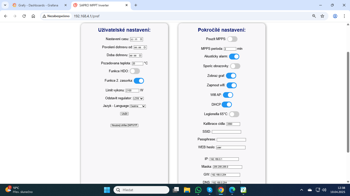 Epever 3kW vytěžování do bojlerů + žebříky