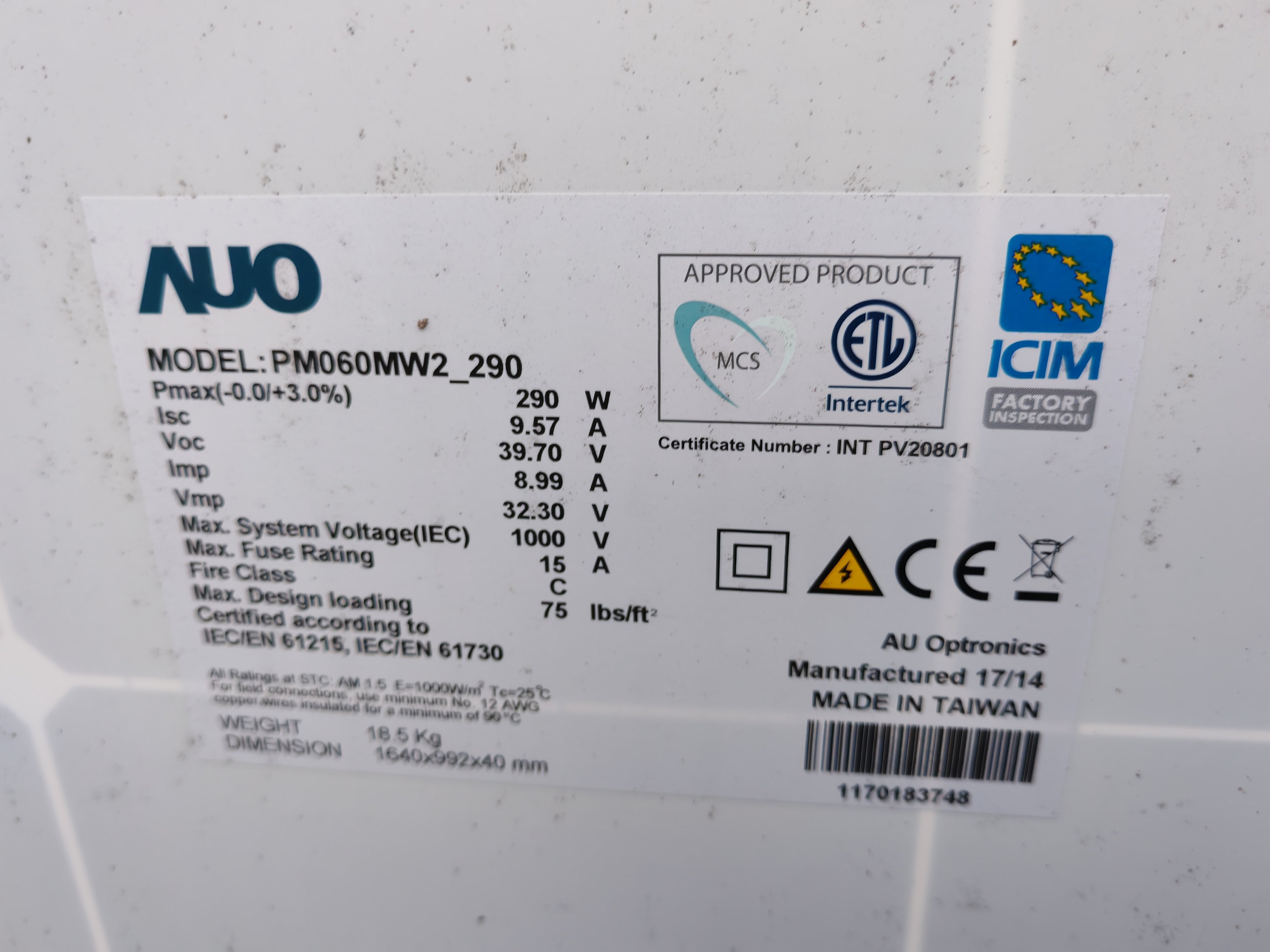 prodám 2 panely benq 290w 18.5Kg. 1940x992x40