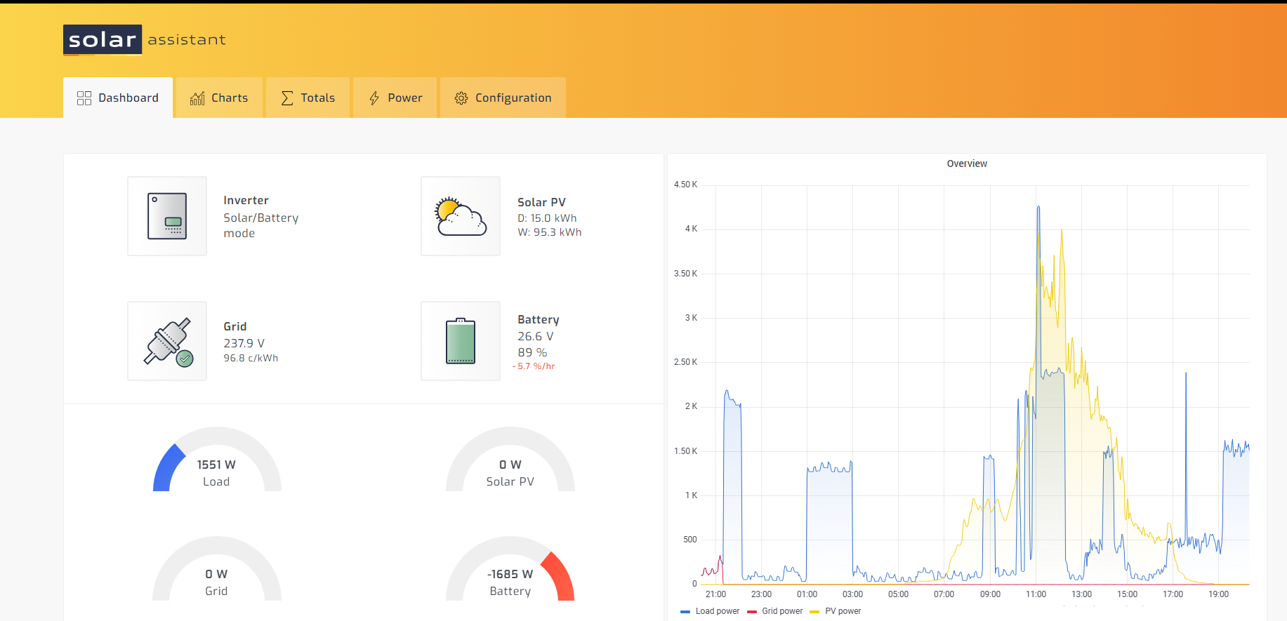 2x MUST PH1800 5.5kW, 9kWp V+J+Z, 600 Ah LiFePO4 s BMS JBD 200A, SW: Home Assistant na Synology DS923+ ku tomu ESPHome, Tasmota, MariaDB, InfluxDB, Telegraf, Grafana, Zigbee2MQTT..., HW: ESPlan (ESP32 + LAN 8720 + RS485). Nejaké moje projekty: MUST-ESPhome, ELTEK Flatpack2 ESPhome, ESP32-EMON, PZEM-017@WiFi, diyBMS-CurrentShunt-ESPhome , BMS UART-TS485 adaptér