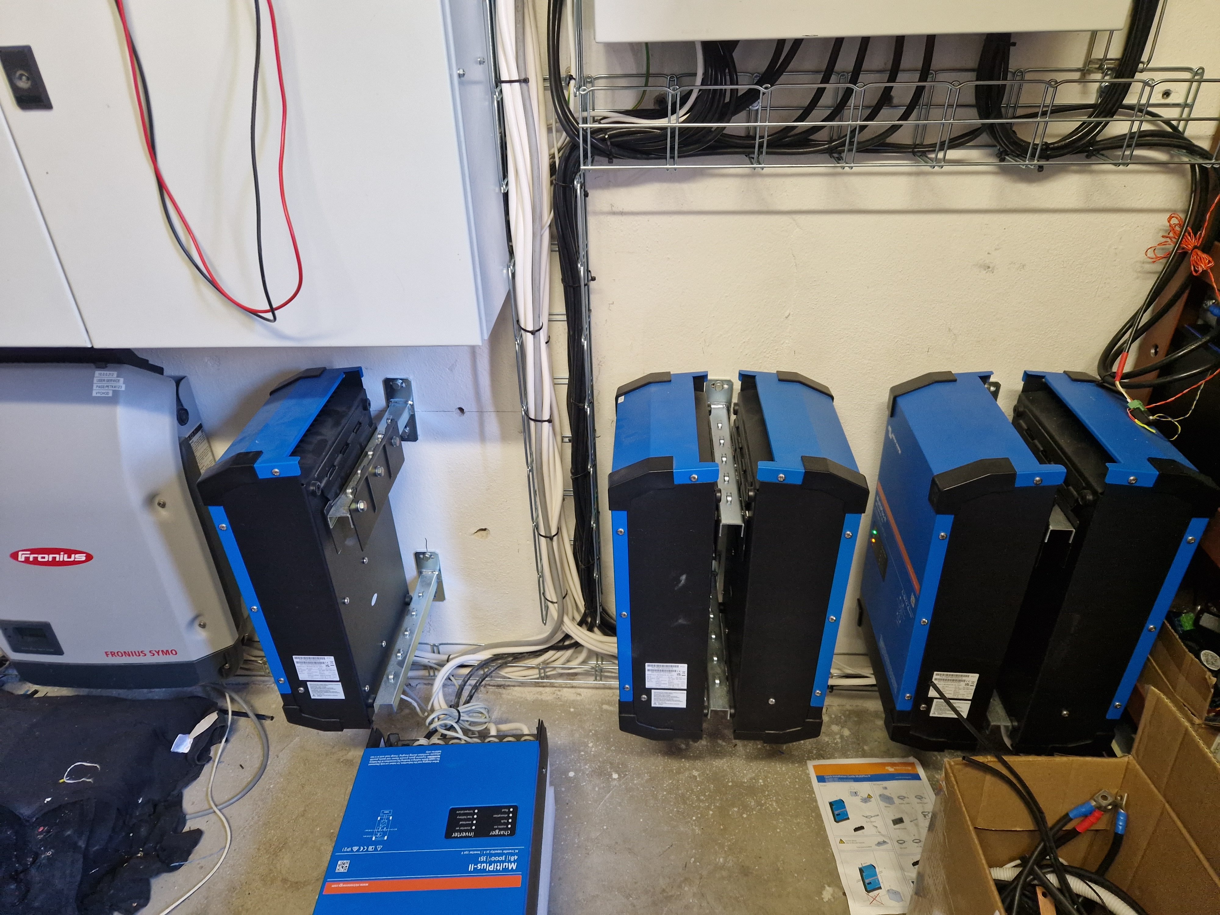 3,6kWp GWL Poly + 8,82kWp Canadian Mono, 3x PIP4048MS, 5x80P14S = 5600Cells 18650 (~900Ah/47kWh)