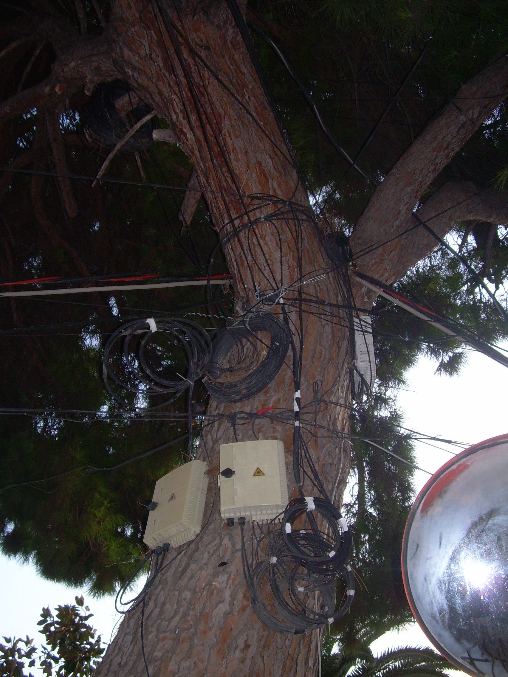 S podivem, že to ještě funguje. Podobnou fotku mám z chorvatska, tam vedou dva neizolovaný dráty do keramickejch kolínek ve zdi...
