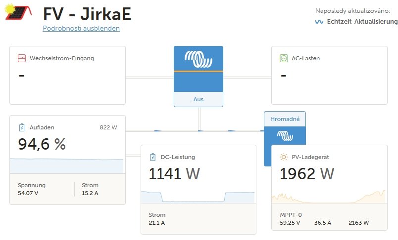 Přesně napsáno.Navíc,jak píše JirkaE,citace:"Nebudu doma a něco se podělá a ta holka (myšleno moje žena) to ani nenastartuje zpět - s tím množstvím podmínek - když to jedna z nich bude pořát schazovat."To je důležitý aspekt.Moje žena je vyškolená v rámci "co by kdyby".Hlavně v případě blížící se bouřky.Já jsem často mimo republiku a nedokážu na dálku posoudit,co se u nás děje.Jiné komplikace u nás nejsou.Ale vytěžování si řídí sama dle její vlastní spotřeby a dle předpovědi počasí.Velká baterka jí poskytuje docela volnost a prostor pro chyby.TomHC píše: úte kvě 20, 2025 10:27 amJa som zistil, že keď je dosť panelov a dosť bateriek, tak plynulé vyťažovanie netrebaStačí mať možnosť spínať to v pár krokoch.