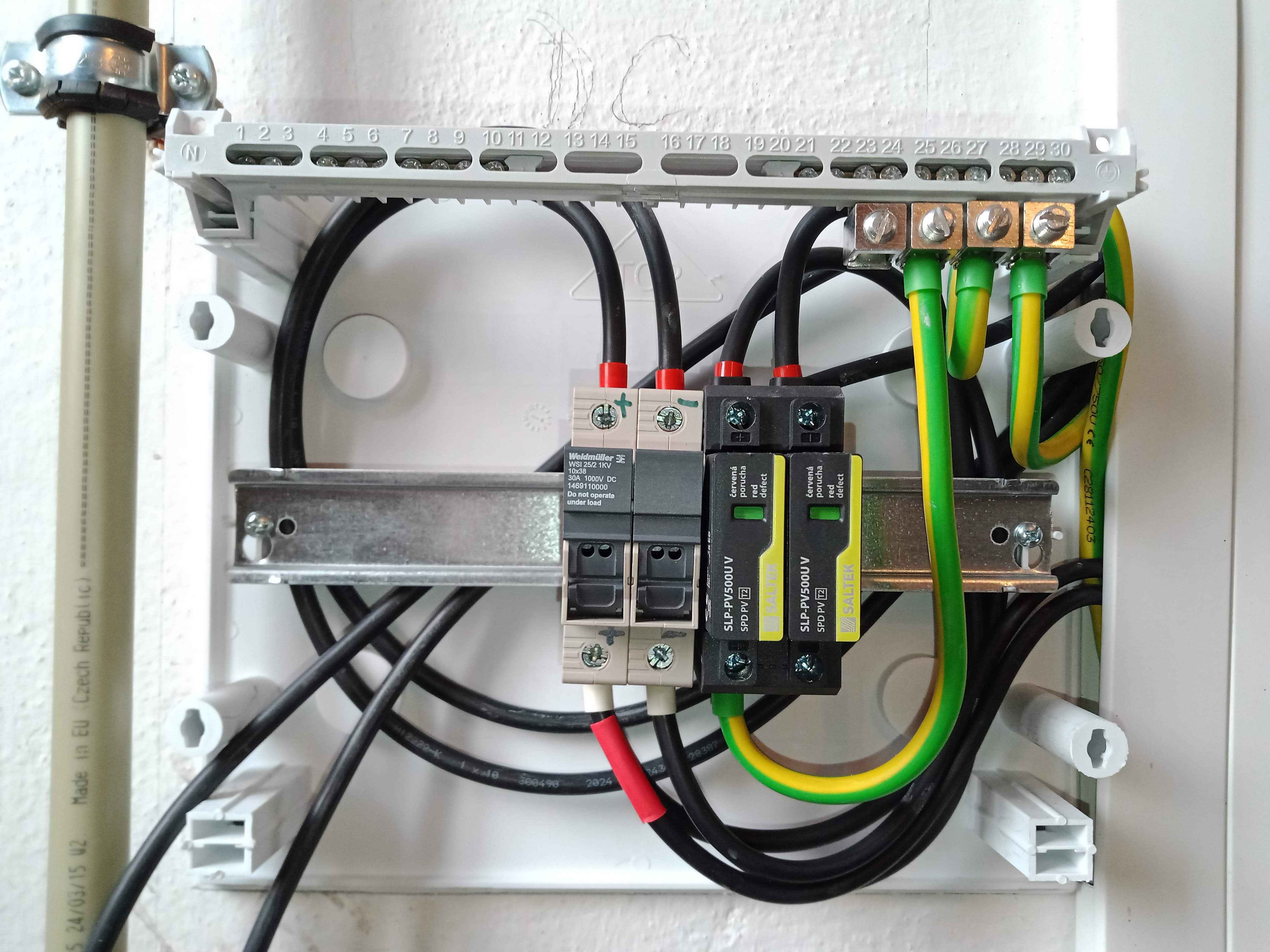 Včera zapojeny svodiče přepětí pro východní string 256V (312Voc) 17,3A > 4 400Wp
