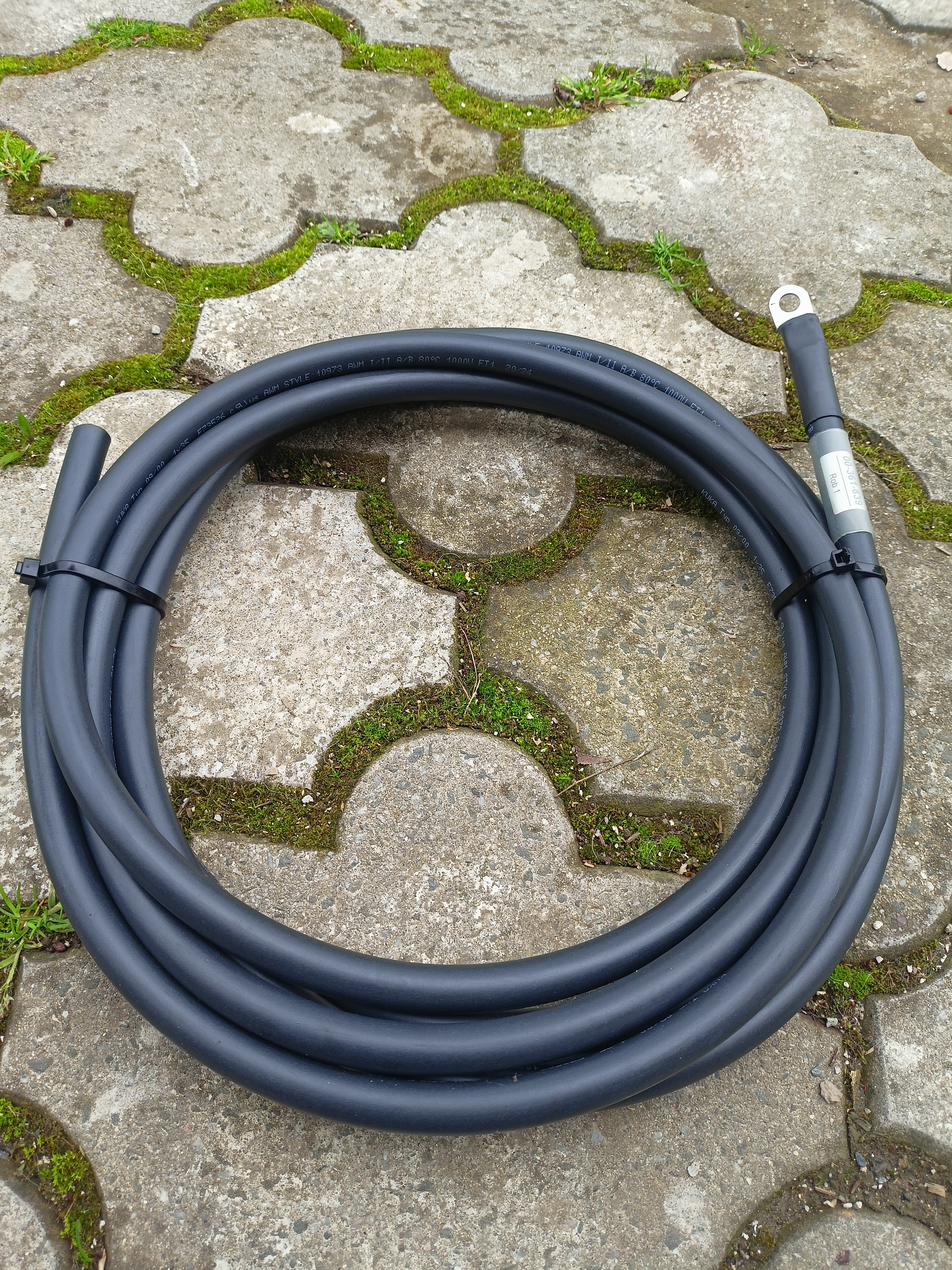 Nabízím kvalitní vodič kuka 35mm2, je velice odolný a má dvojitou izolaci jedná se o vodiče z instalací průmyslových robotických svařovacích pracovišť KUKA. K dispozici je 8 délek po 4,5m, jednu délku(klubíčko) nabízím za 500Kč.Jeden konec je už dokonce osazen okem M8x35mm