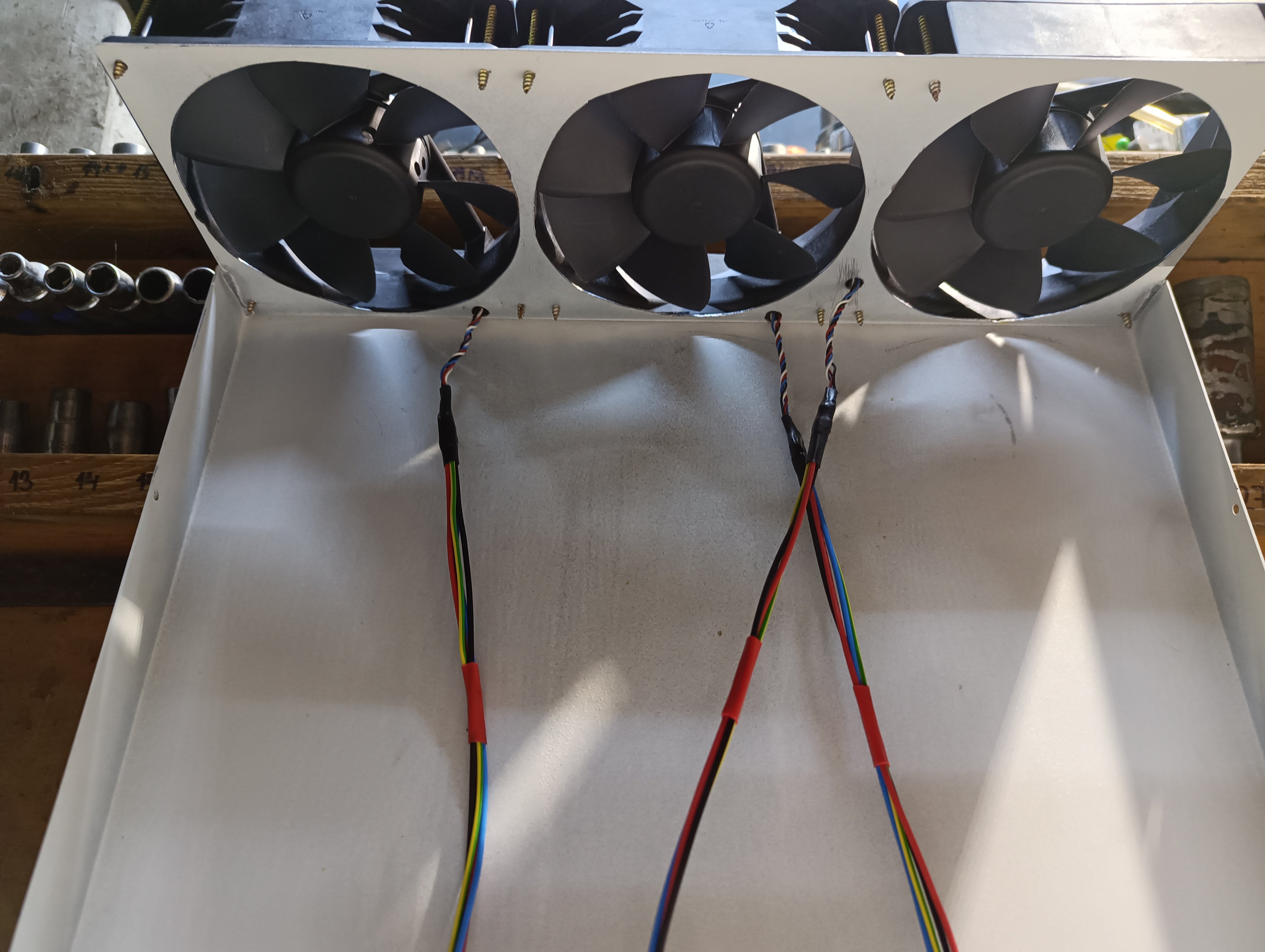 Měl bych dotaz jak ovlivnily chod původních? A jaký rozdíl mají v tlaku oproti původním. Tohle by bylo řešení ty původní nahradit odtahem ze zhora a otočením směru,jejich spotřeba je jen 0.35A/12VDC 110CFM ,původní dva pravé mají 1.05A/12VDC 106CFM,jen ten tlak si už nepamatuji a ten třetí na MPPT sekci je slabší,takže by to také posílilo,jen tam natáhnout líp plastový kanál.Samozřejmě to sníží spotřebu při zachování ,či vylepšení chlazení,boční nasávací otvory bych zalepil a dole ventilátory vytáhl.