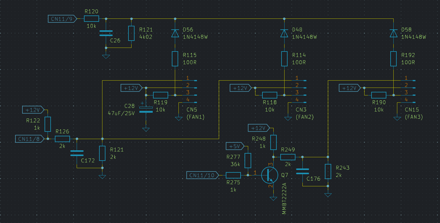 U těchto měničů Voltronic Axpert MAX II TWIN 11kW a EASUN SMW 11kW hybrid inverter je ventilátor řízený PWM 4-pin konektorem 12 V, ale pořadí barev na desce není stejné jako u PC ventilátorů. Výrobce používá vlastní pořadí vodičů.