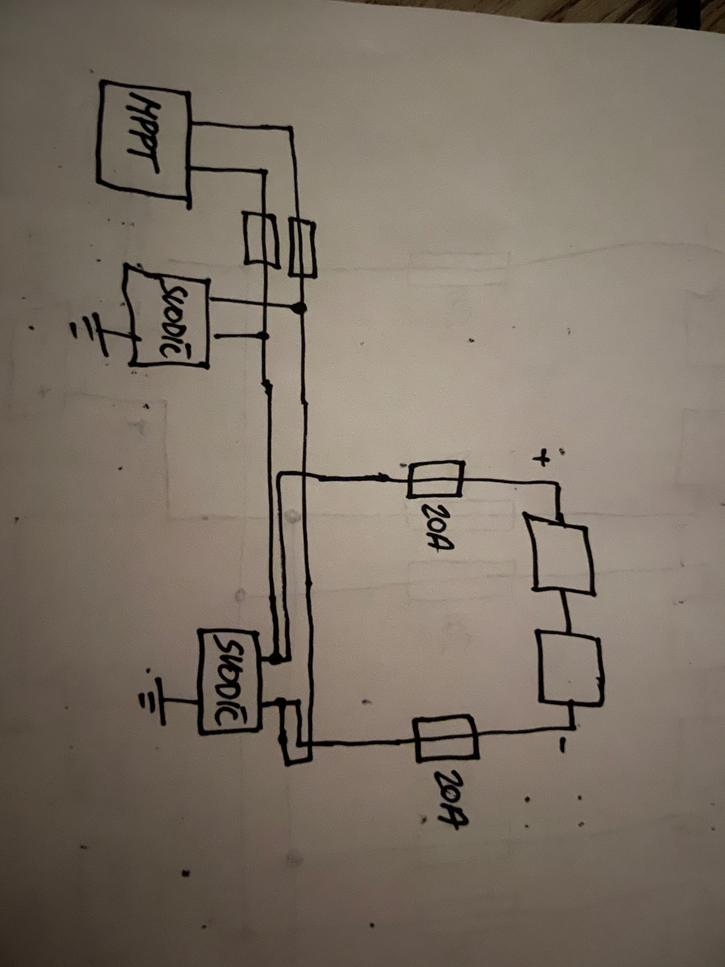 Takhle? Jen mi tam nedava smysl to jisteni mezi jisticem a svodicem? Jen kvuli tomu abych to dokazal vypnout dole? Kdyz neco delam vyndavam pojistky a vypinam jistic takze ty dalsi pojistky mi prijdou zbytecny. Jakou maximalni hodnotu pojistky muzu mezi svodic a MPPT dat?