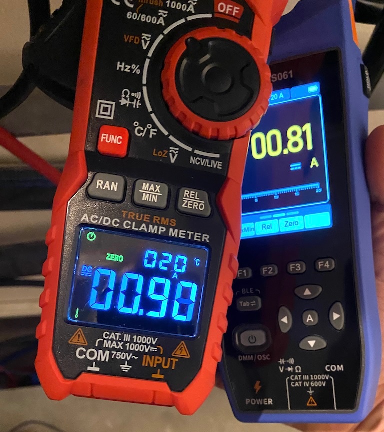 Pokud měřím ustálený proud, tak jsou výsledky na obou přístrojích téměř shodné. Pokud dojde ke změně, HT208D ji zaznamená rychleji, z toho plyne ten rozdíl na jedné z fotek.