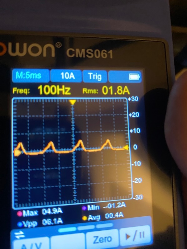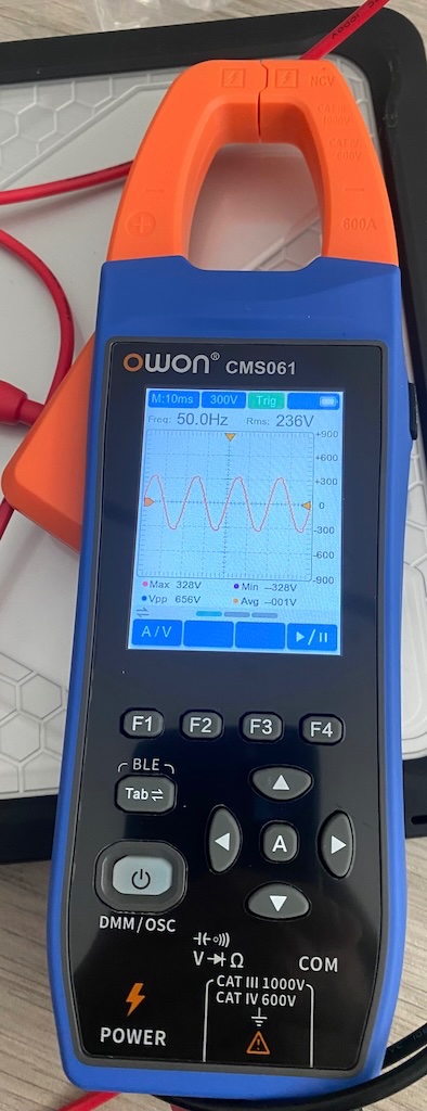 No, a teď co se mi zase až tak nelíbí. UI je takový, no, zvládnout se za chvíli dá, ale nijak extra intuitivní to není, UI na UNI-T mi přijde intuitivnější. Osciloskop je pouze jednokanálový a v režimu měření proudu má rozsahy 300A, 100A, 30A a 10A a zoom ve vertikálním směru už pod rozsah 10A není možný, takže měříte-li na tlustém nebo napnutém kabelu, který do těch kleští nelze namotat několikrát, proud někde kolem 1 - 2 A, na displeji je to vidět jako totální blechy. Zoom v horizontálním směru (časová osa) je ok. Nenašel jsem způsob, jak vypnout pípání při stisknutí libovolné klávesy.