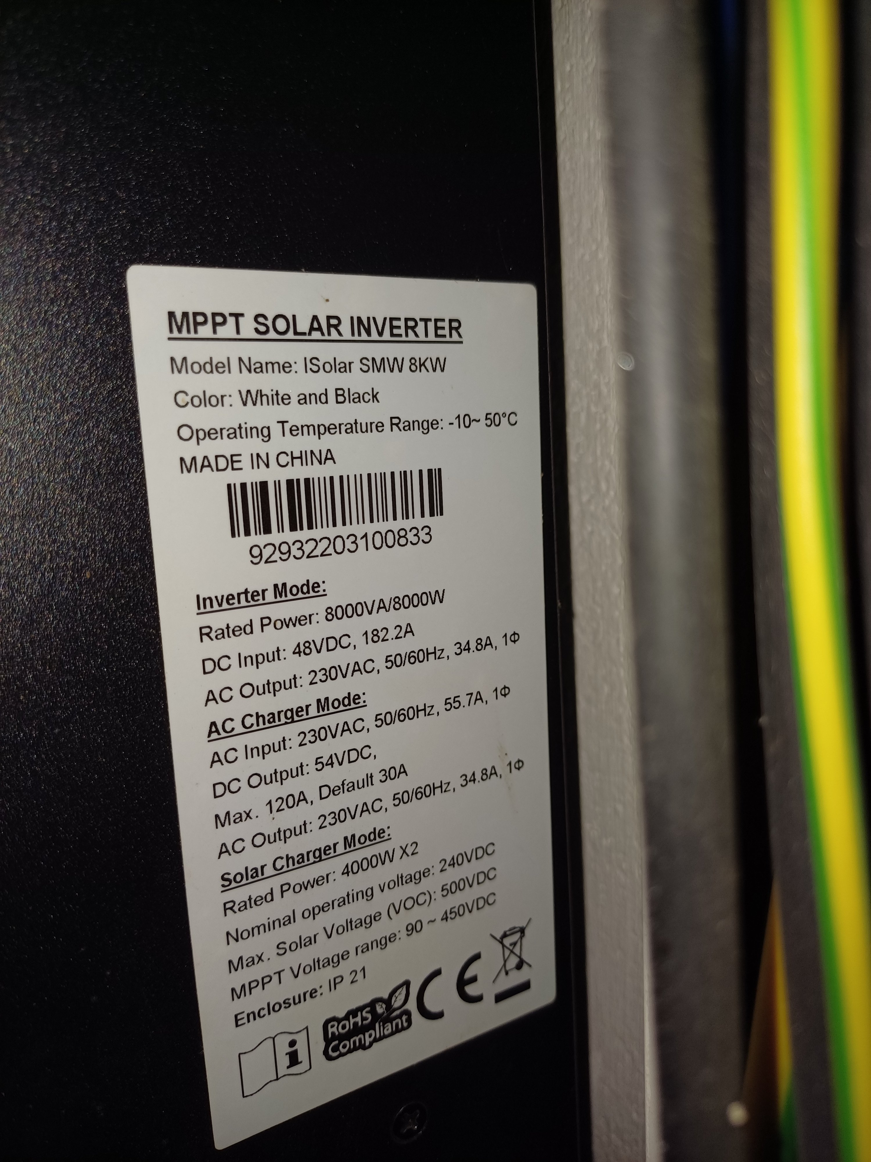 Nabízím k prodeji měnič Isolar SMW 8000 s výkonem 8000W, který podporuje režimy inverteru, AC nabíječe i solárního nabíječe. Zařízení je ve výborném stavu, používané 2 roky s celkovou spotřebou 10,4 MWh. Ideální volba pro solární systémy, dostupné v Mladé Boleslavi.