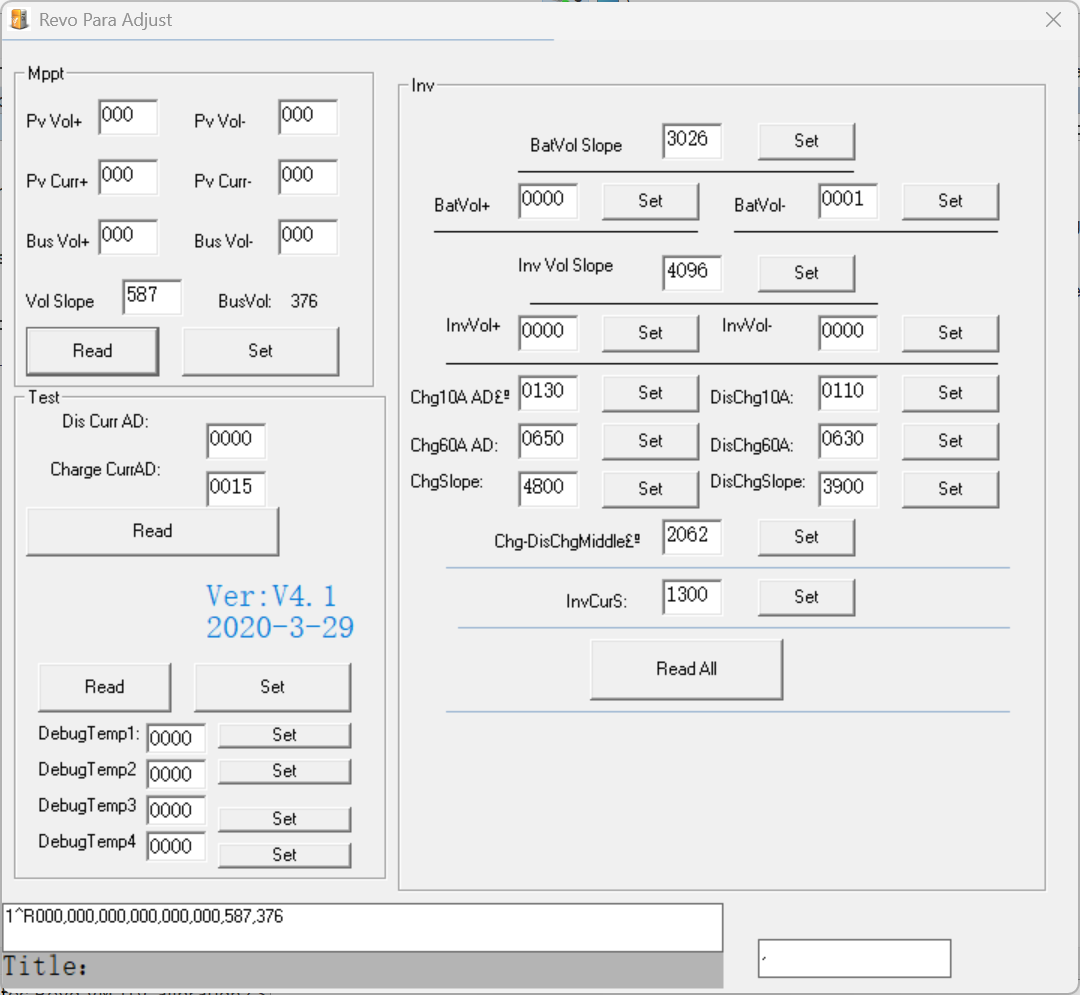 pripojil som teda menice na laptop cez seriovy kabel a cez kalibracnu utilitku Revo Para Adjust (CommConfigV41.exe) som zisil ze napatie lieta od 380 do 480 V co sa mi zda dost.