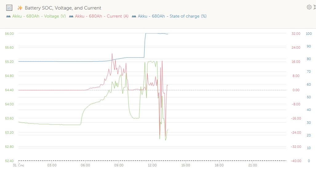 jen pro informaci jak dnes u mě, zatímco včera (adaptivní) fáze absorbce trvala 7 hodin a sunt na plné baterii visel na 99,8%, než to spadlo do floatu a proběhla synchronizace, dnes to trvalo chvíli (žádné změny v nastavení)