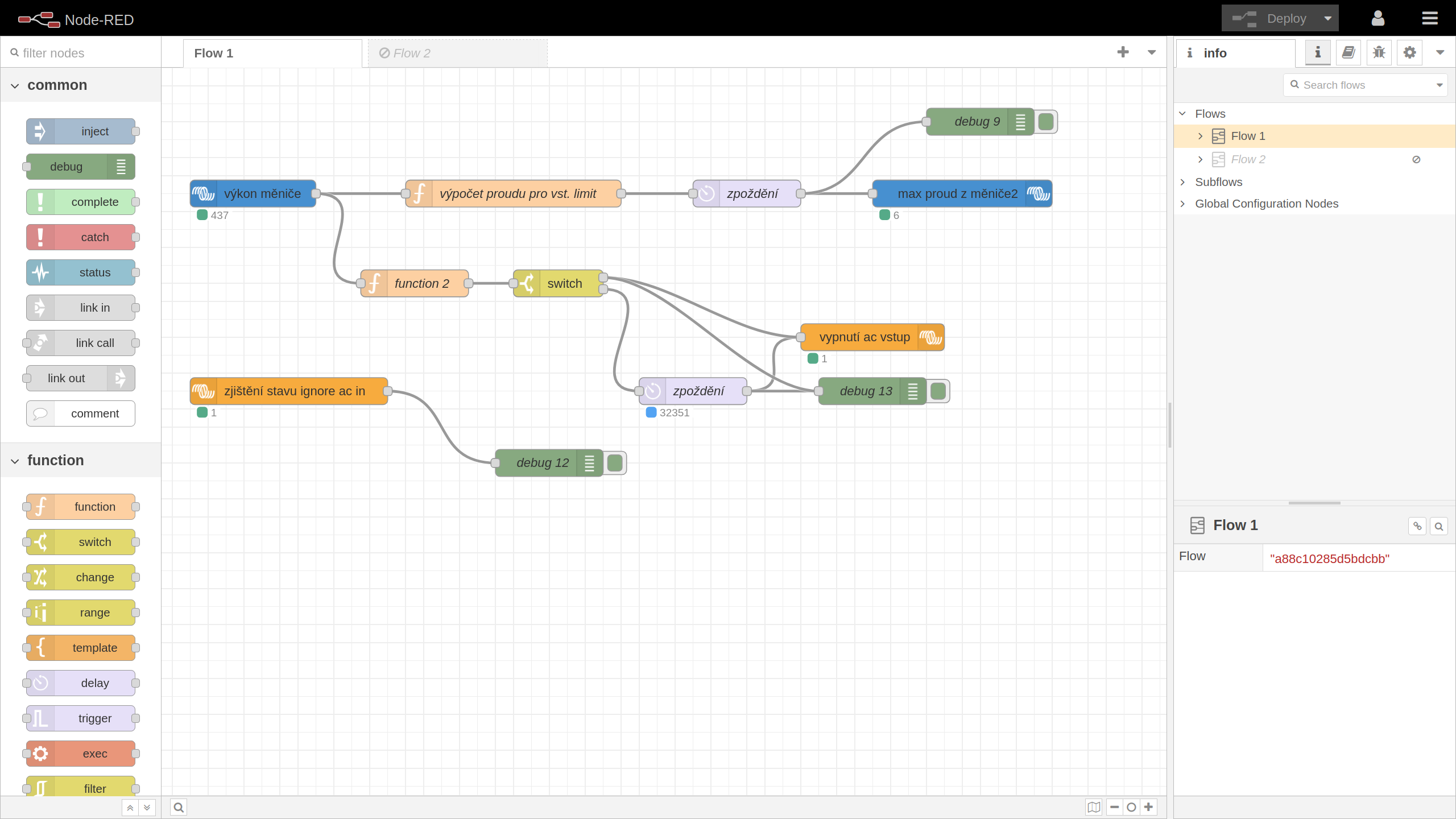 NODE RED a automatické řízení proudového limitu AC IN Multi dle zátěže na AC OUT v 3F systému ...