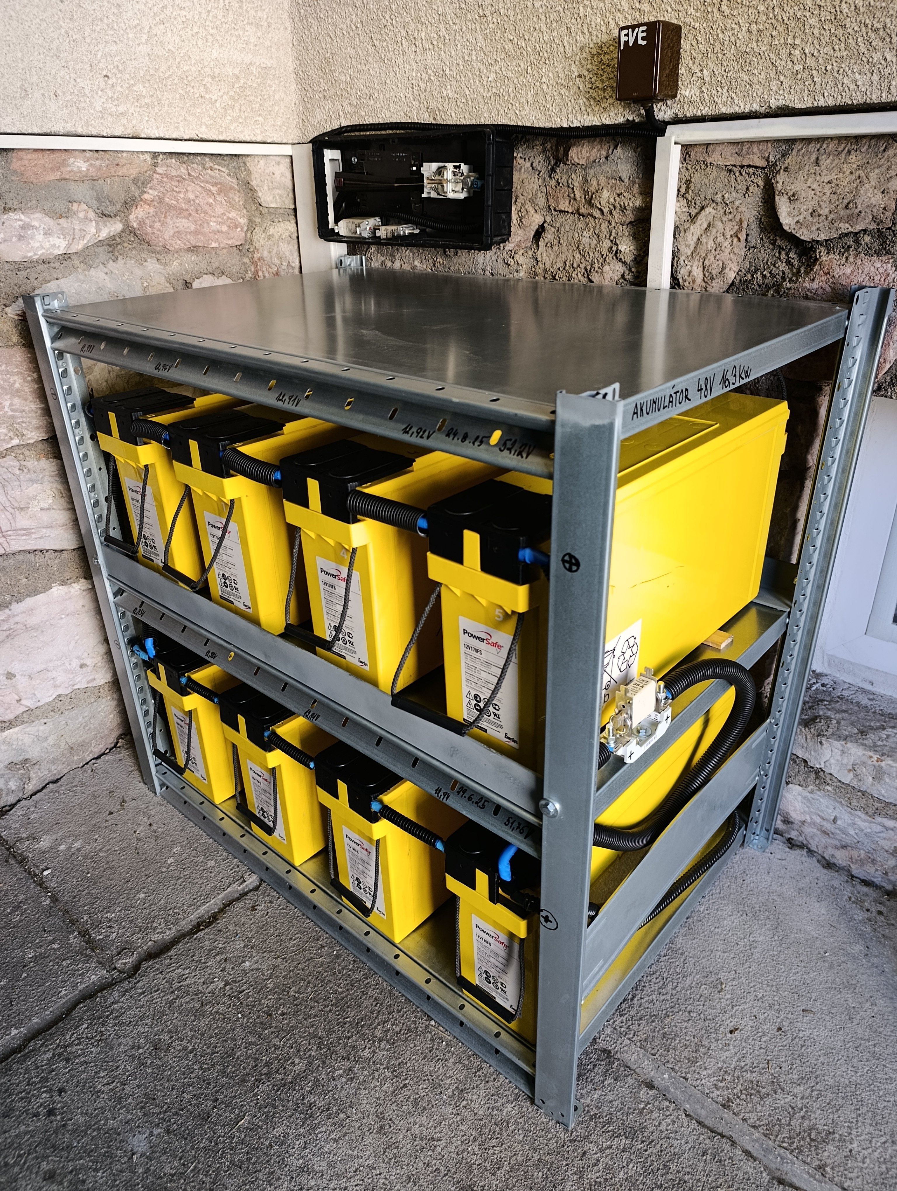 Postavil jsem si svépomocí ostrovní systém, panely 4,8kw, měnič vevor 5500 , baterii mám složenou z olověných akumulátorů 8x 12V 170Ah , celkem 48V 340Ah .