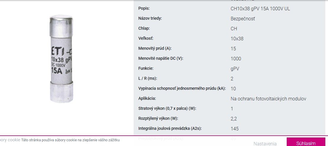 Po vymene poistky som premeral aj stratu na poistkovych odpinacoch a vsetky maju rovnake hodnoty, ziadny prechodovy odpor ani nic take, vsetko funguje ako ma aj aj vykon sa hned dvihol vid sipka v grafe: Uvidim co odhali termokamera ak zozeniem, ale skor si myslym ze bola slabsia poistka.Panely maju Isc: 13,68A a teda preto mi to nejde do hlavy ze na jar ked tam bol ten vykon o dost vacsi tak to tie 15A poistky v pohode ustali a teraz cez leto nie...