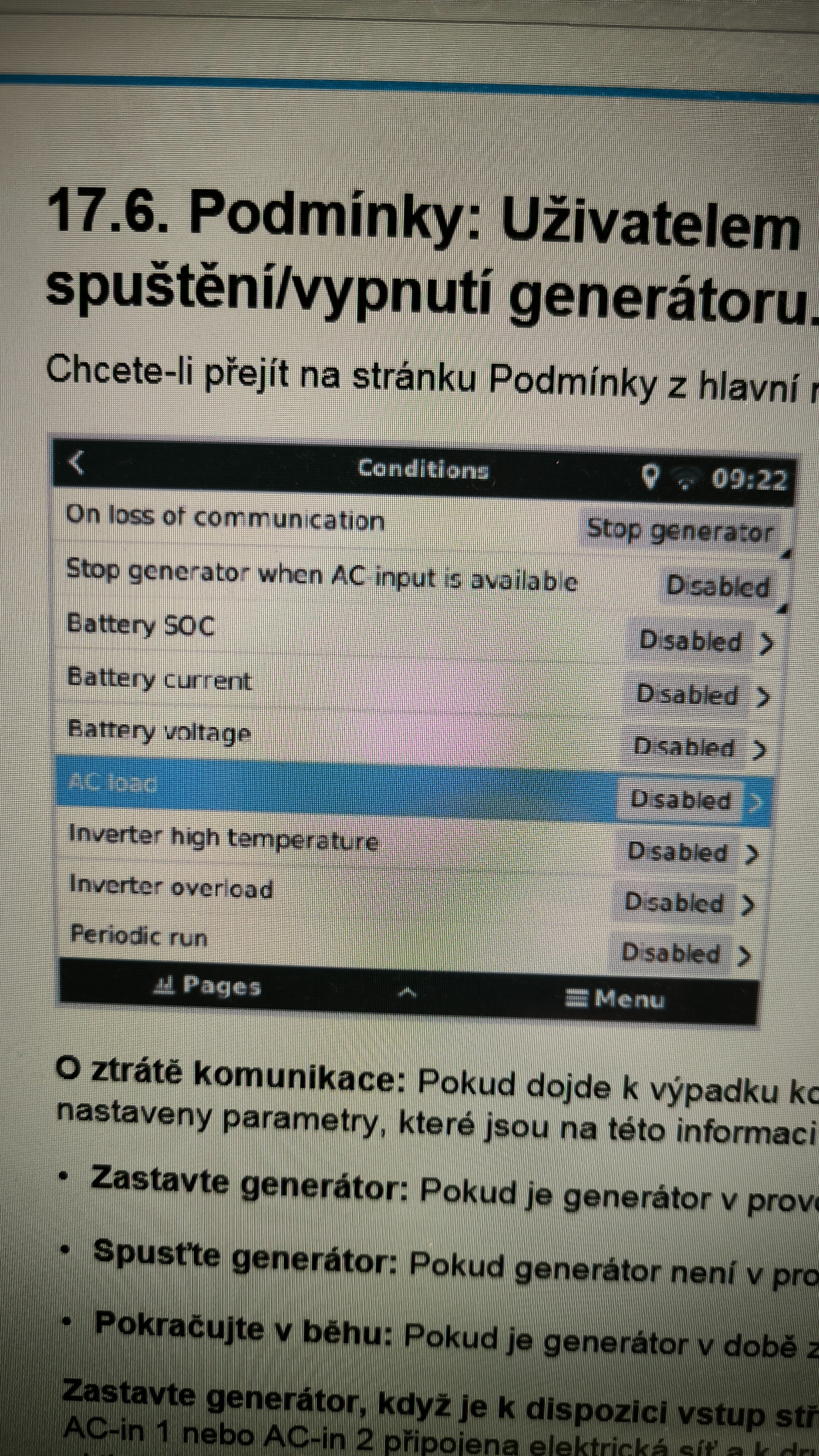 mam 16kW panelu, 30kW baterky seplos, 3x5kW menice, rele na cerbu pouzivam v inverznim rezimu na nabijeni 2 boileru, teplotu neresis? na tu mi to pada nejcasteji, kdyz je zatez, vytopi to celkem slusne 2 garaz, asi pouzivam Virtual switch, dlouho sem se v tom nehrabal ale musim to vyresit, pada mi to, nemas zkusenosti s tim nastavenim primo menicu? jak sem psal, aktualizoval sem to, jestli uz to nak neopravili, pada mi L2 a L3, L1 se prepne i pri teplote i pri pretizeni - cele se to prepne na sit, nebo jak sem psal -prodratovat to mezi L1 vstupem, L2 a L3 vystupem a jak to nastavit?