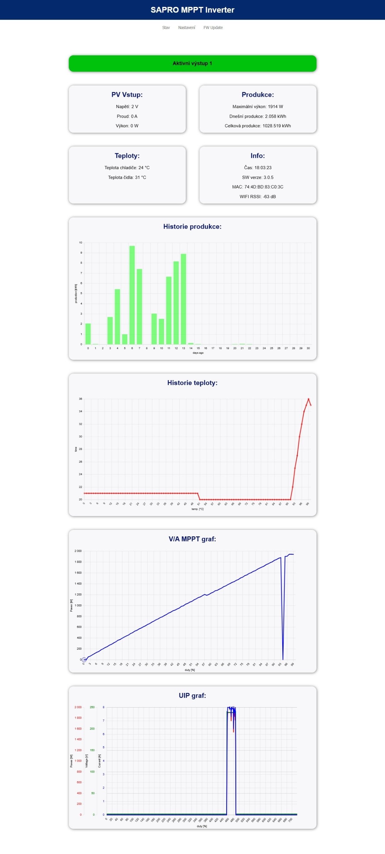 Vše dostával výrobce a vývojář. Je to ten screen výše, naběhal už víc než 1000kWh (stará původní deska s novým SW)