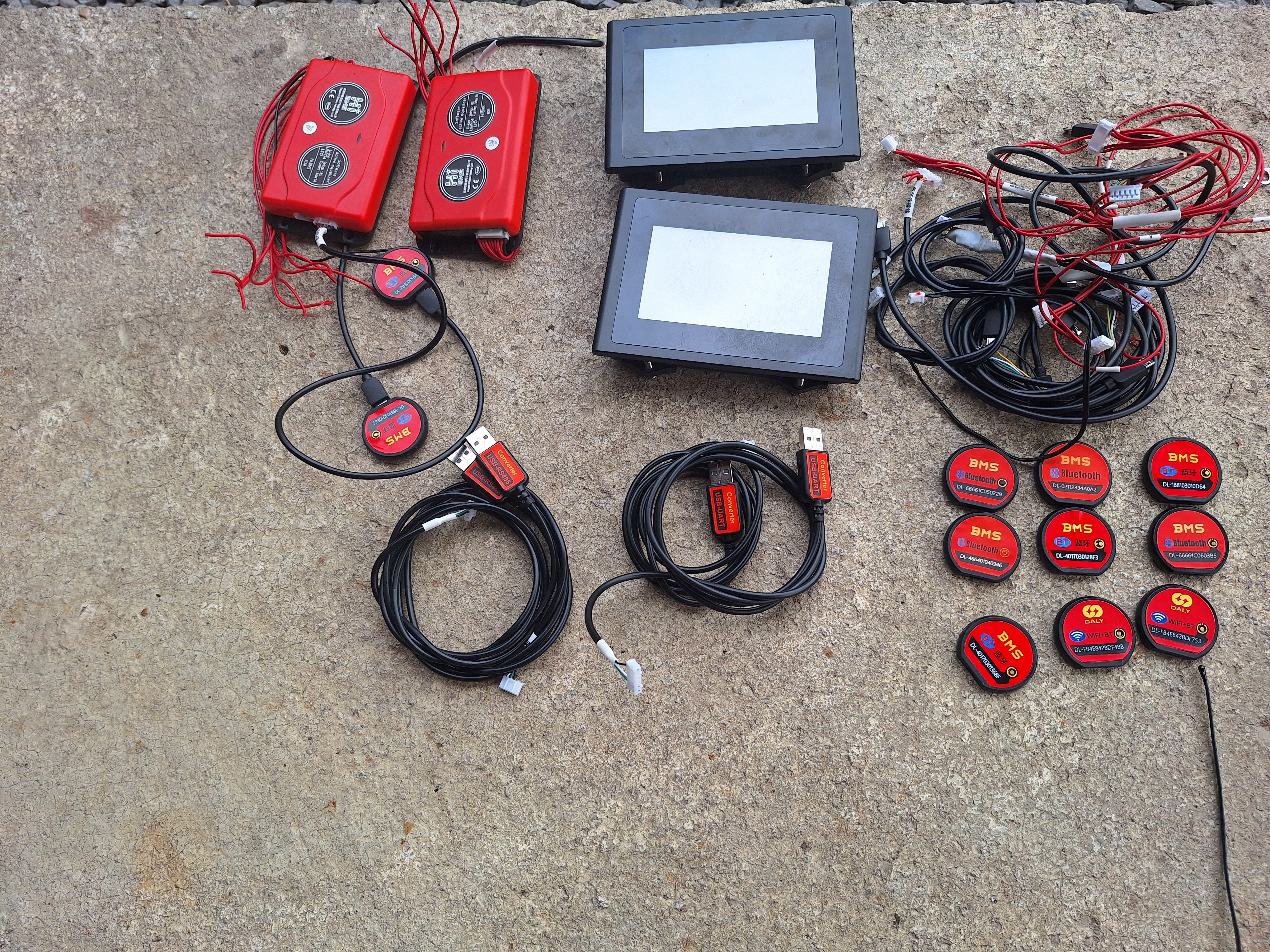 Predám plne funkčné 2 ks dotykových displejov na BMS DALY (resp. Heyo, HiBMS), 2 ks 1A Smart balancerov 8S, 2 ks kábel UART na USB, 2 ks kábel RS485 na USB, BT moduly, 2 ks wifi -BT modulov(neviem či sú funkčné, lebo mi odišli BMS-ky, k tomu pribalím zadarmo na pokusy alebo na náhradné diely nefunkčné 3 ks BMS HEYO, resp. Hi BMS (vlastne je to DALY v inej farbe) Dve BMS ešte komunikujú s počítačom a dá sa inštalovať firmware, 1 ks nekomunikuje.