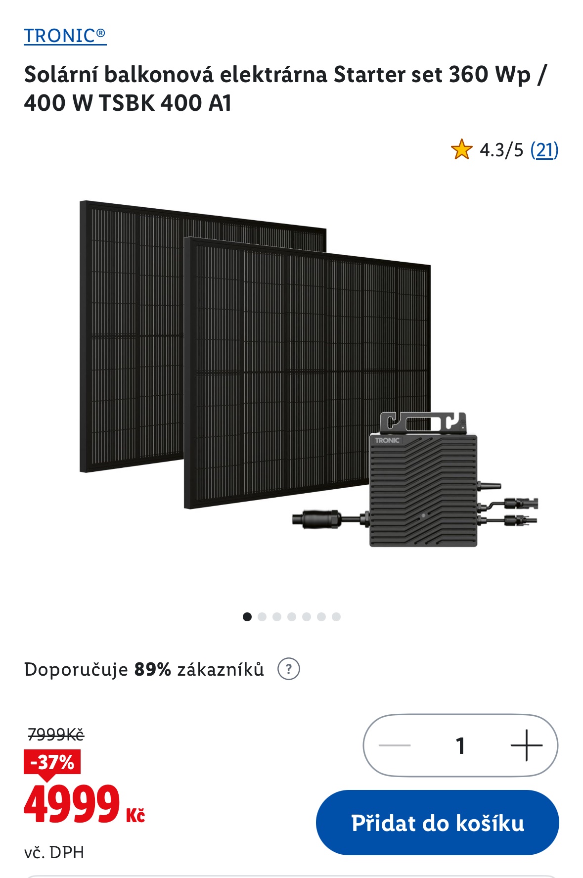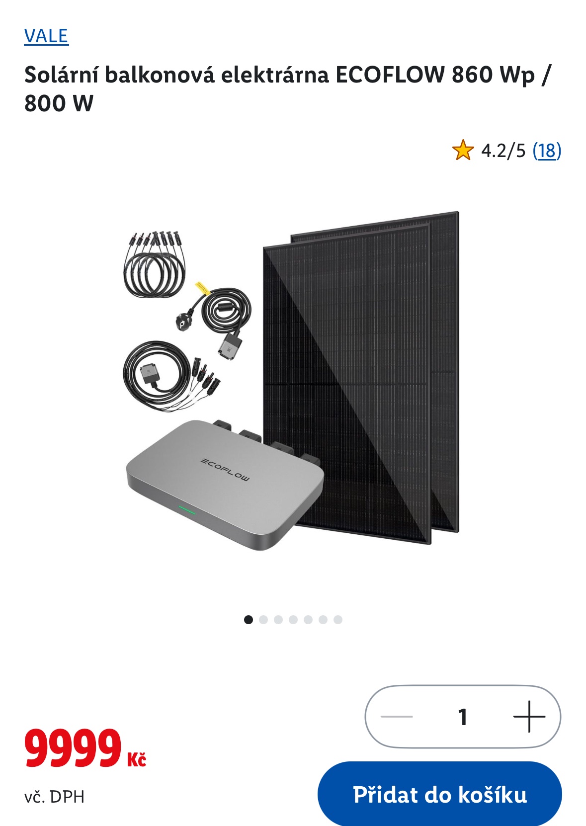 V Lidlu v akci 199 EUR. Detaily neznám. Je to nějaká jednodušší verze.Kajap píše: čtv zář 11, 2025 7:24 pmKde se prodává ta balkonovka i s FVP a kabely za 239 Eur ?