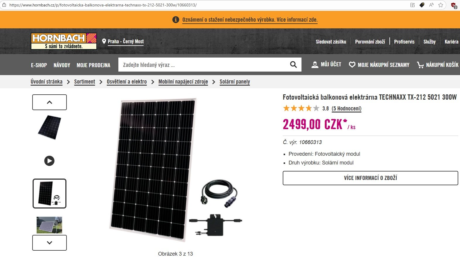 Hornbach, 300W, 2.500Kč. Panel+mikroinvertor.