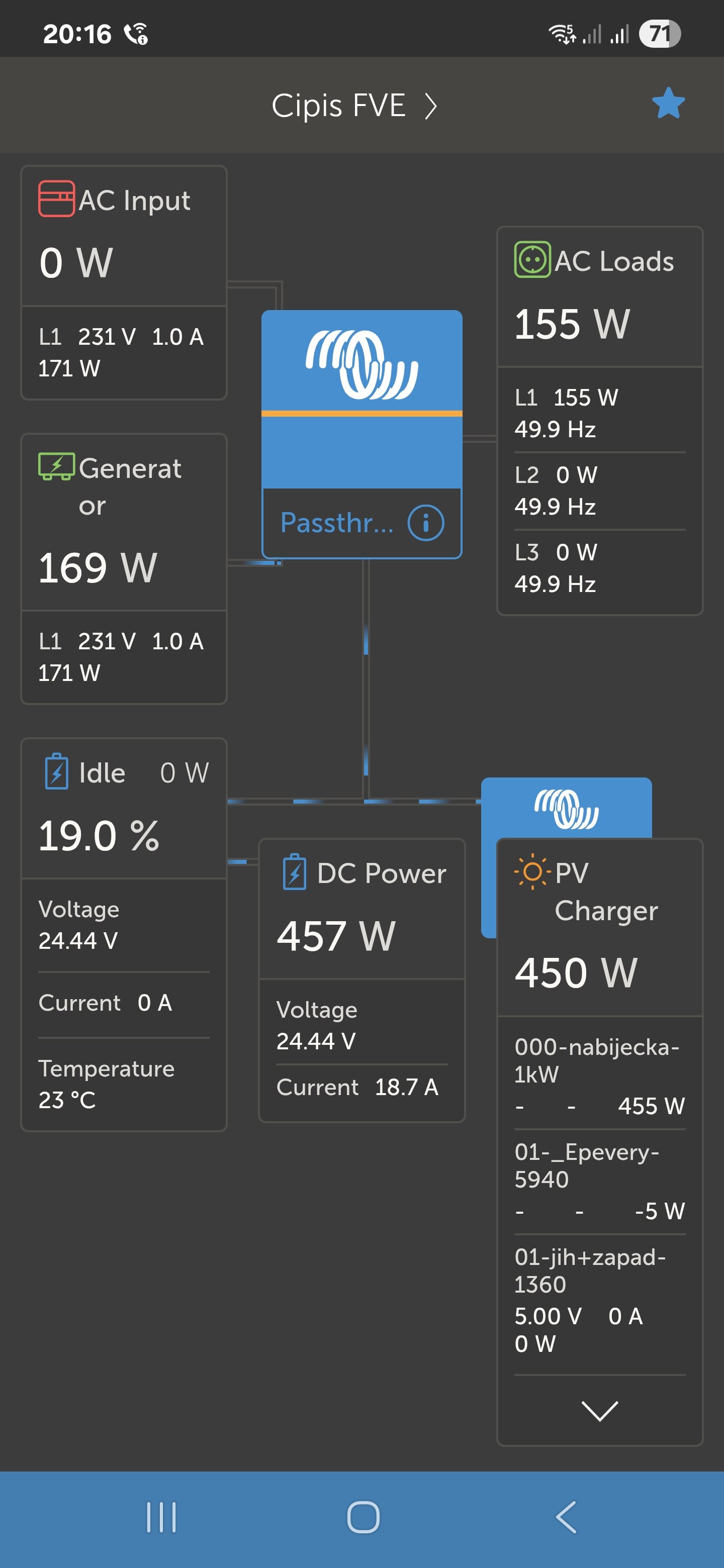 Edit : Ty jo, vypadá to, že největší chaos v tom dělji právě ty dva Multiplusy i ta divná a záporná čísla na DC spotřebě.