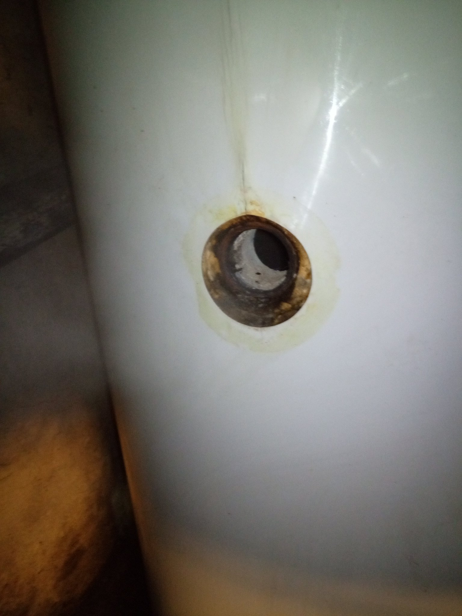 Závady jsou koroce hrdla 6/4 příruby která se snad dělá jen na okrouček, je zeslabená v doní části závitu zvenku korozí, asi od průsaku. Potom nefunkčnost teplotního ukazatele co bojler má z výroby. Asi po 6ti letech se jaksi zasekl a ukazuje v okně ne cca 180°ale jen 45°. Při čištění jsem našel asi 3 malé šupiny smaltu odlouplé z vnitřního povrchu, tak čekám prorezavění během dalších 10 let.