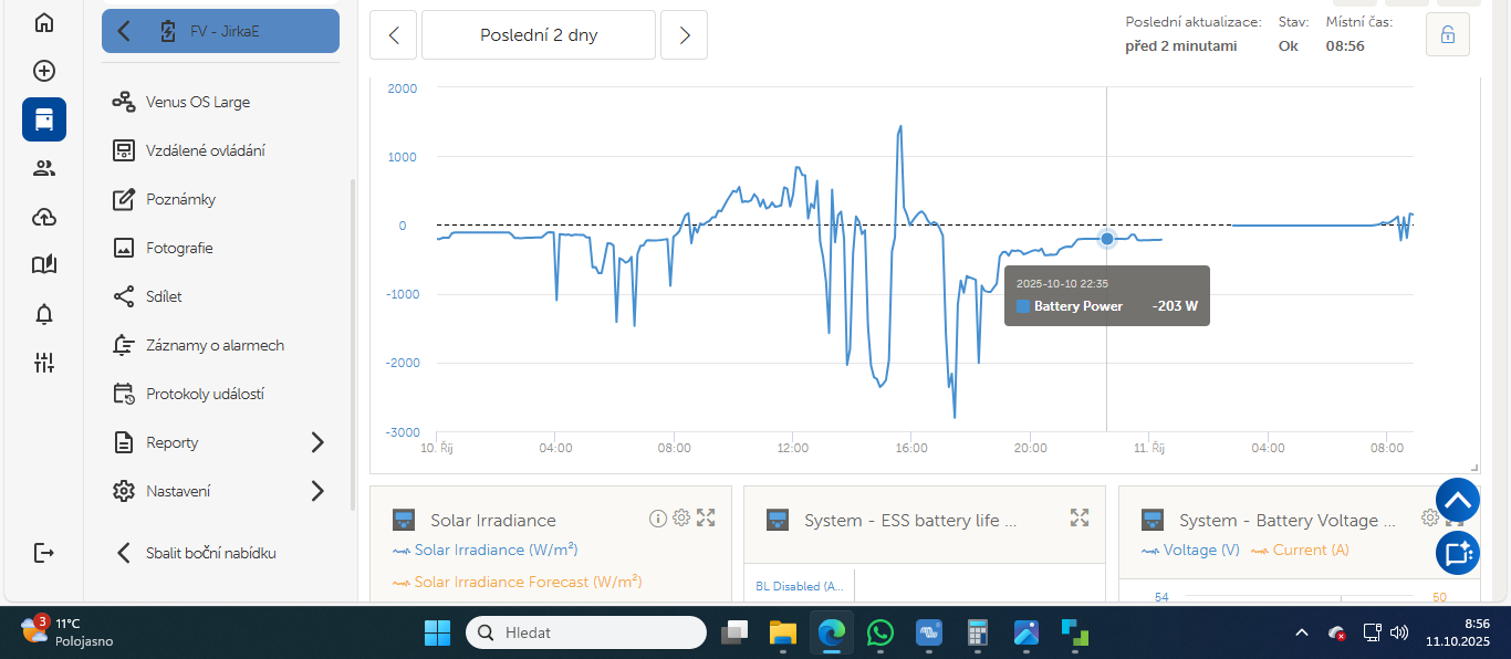 Výše jsi dával obrázek z VRM s otázkou, jestli proběhla synchronizace, tak si myslím, že ne, protože je tam velký rozptyl Battery average min - max.