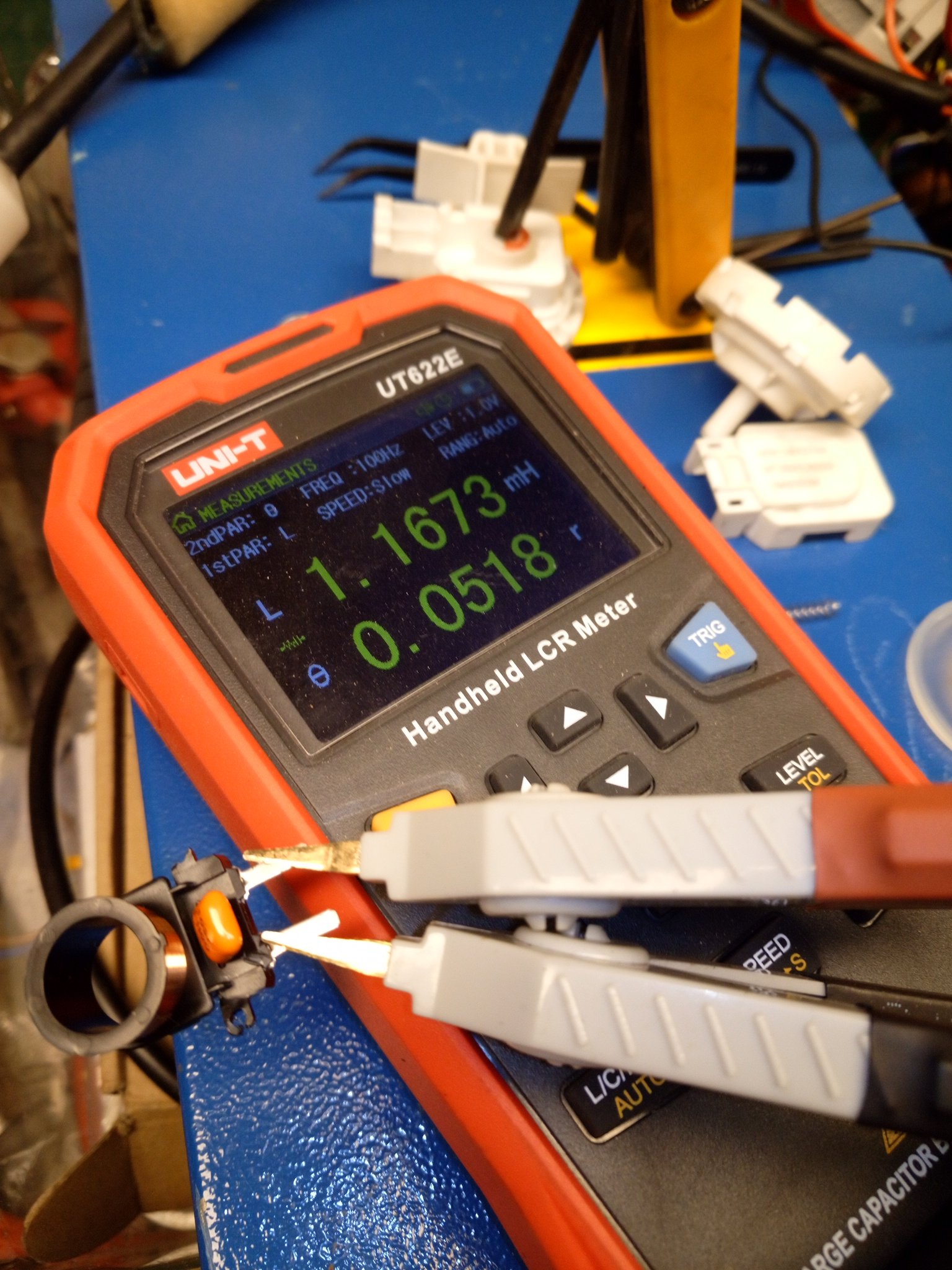 Pitva a nějaké měření senzoru, s magnetem, bez magnetu, samotný kondenzátor, ESR je asi ke kapacitě ok, v nádobě bez dna se vyvine při nějaké pohybující se hladině vody tlak a ten hýbe přes gumovou hadičku magnetem který je obklopen cívkou, podle měření je to cca 1μH s a 2μH bez magnetu (nebo obráceně). Polování nevím jak změřit, asi druhým magnetem... tak po zkoušce to bude feritový prstýnek, na železo to nevyvíjí magnetickou sílu ale na magnetu se to chová polárně tz. jede - putuje od středu do stran na plochém jednom polu magnetu. (magnet kde jedna velká plocha je jeden pol, druhá druhý pol) Regulace pro převodník a pro nastavení je imbus klíčem.