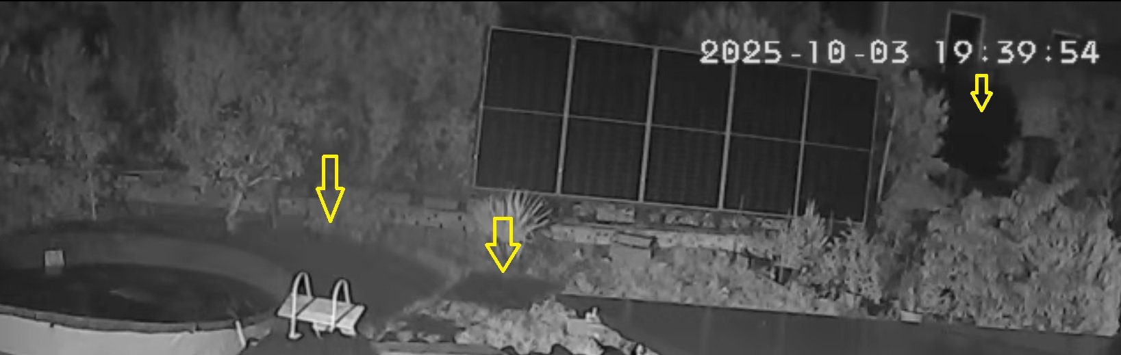 Já mám právě kamery poměrně drahý, obraz výbornej, mají i celkem silný přísvit, ale ten je spíš směrovaný před objektiv , než do stran. Proto jsem si říkal, že bych tam dal ještě další přísvit, který by pokryl prostor za plotem, ale kamera tam už teď dobře vidí...přes den.