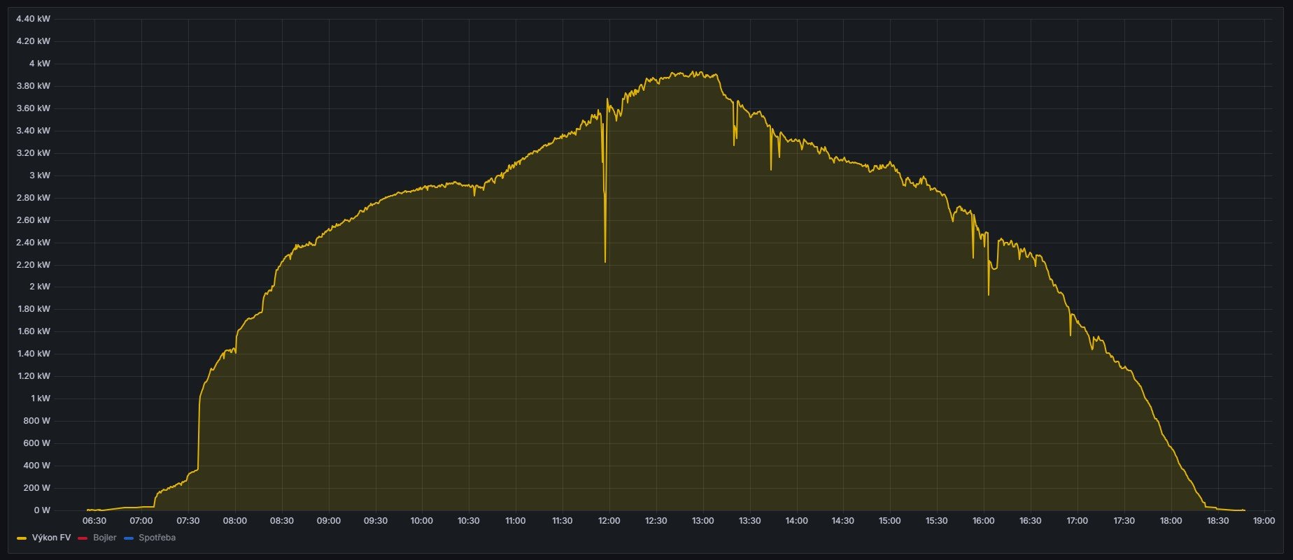 U nás trošku proplouvali mráčky včera, ale tím že bylo chladno, výkon byl vyšší a krásný podzimní den, i když už jsme ráno poprvé škrábali auto (-1°C)