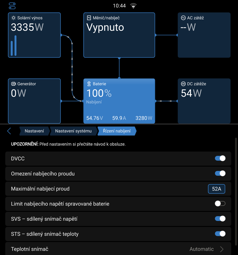 Děkuji.Aldron píše: úte říj 14, 2025 4:25 pmJa mám bulk=absorption=float=54,4V a vyťažovanie podľa napätia, takže žiaden z uvedených problémov u mňa nestáva.