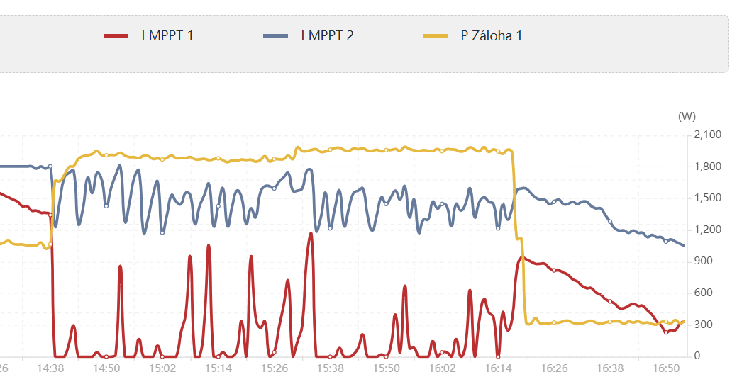 Já jsem s tím měl problém při přepnutí na ostrov (vynucený offgrid). Asi to bylo tím, že jsem měl původně zapnuté "Shadow scan" (či jak se to jmenovalo) v PV Master. Nová appka SolarGo tohle nastavení už vůbec nenabízí, ale někde to v tom střídači zůstalo a byl s tím problém - jakoby to někdy neumělo najít max výkonový point. Když jsem to ještě přes starý PV Master vypnul, tak problém zmizel.Vader píše: stř bře 20, 2024 10:51 amAle pozorujem ze obcas vypina stringy na nejaky cas , neviem preco ,ten novy fw ,stary 923 to nerobil