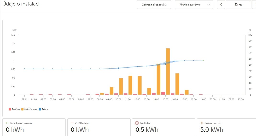 A teprve když jsem to propojil kabelem, tak se mě to zobrazilo na Dashboard s 0W výkonem.