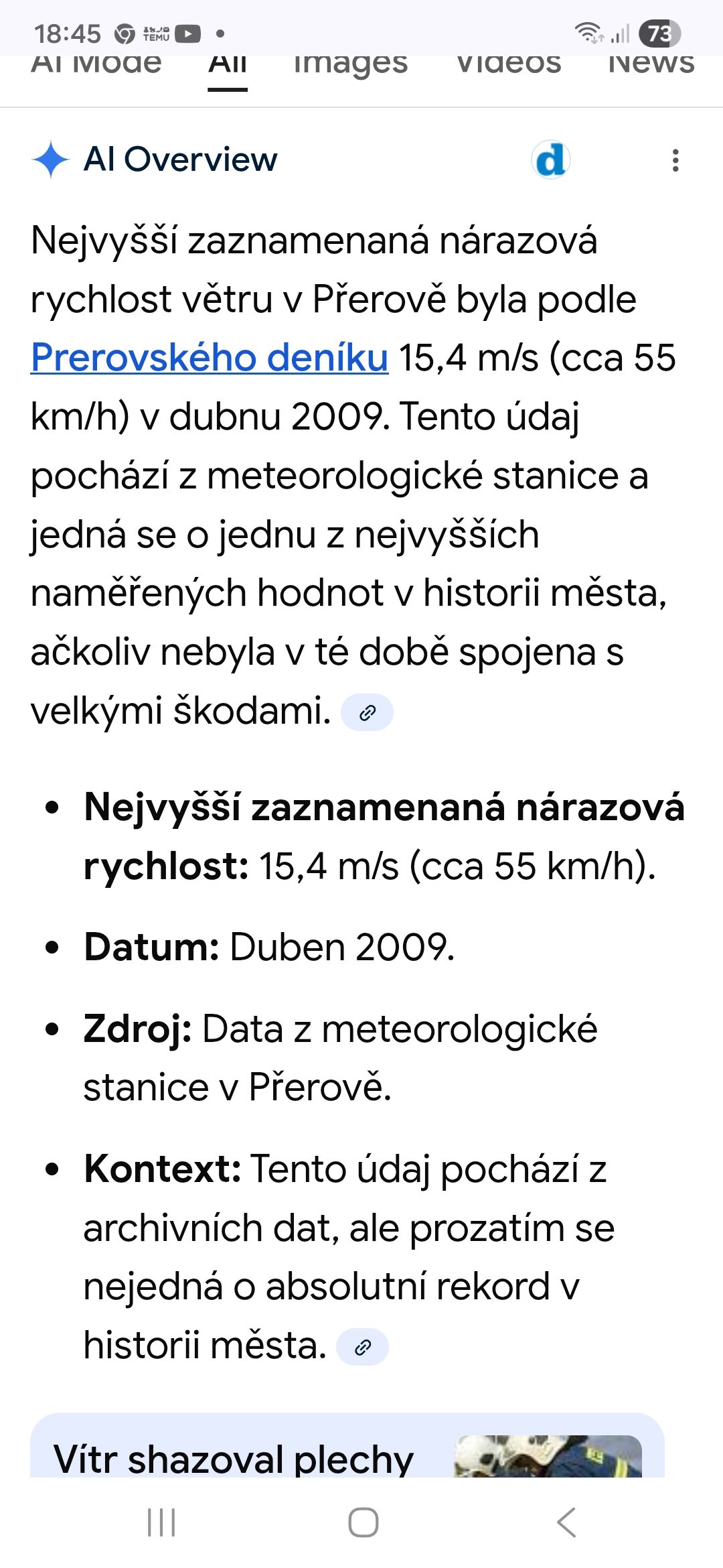 Jà jsem naštĕsti v zastavĕné oblasti krytý mezi rodinnými domy na Hané.Tady vichřice ani silného vĕtry nebývaji.