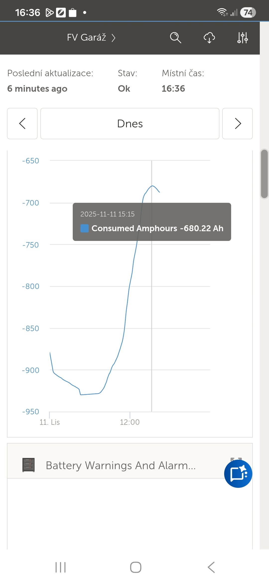 Nad ránem došla energie -930Ah z baterie a konči vytápění domu a jizda v BEV čistĕ z.FV přebyrků.Chybi mi zapojit poslední sekci 4500Wp ta by to výraznĕ nezmĕnila protáhla by to řádovĕ o týden.