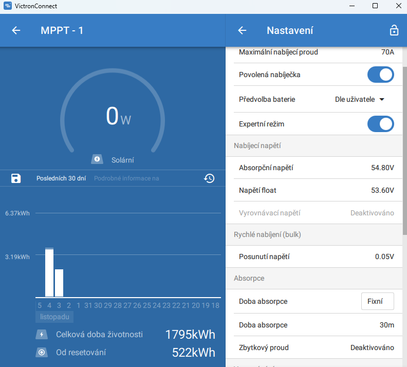 Už jsem ten ,,STAV" popsal asi 4x ale nevadí tak ještě jednou...Radar píše: úte lis 04, 2025 5:36 pmJirko, kde jsi vzal ve VRM ten MPPT STATE graf .........? hledal a nikde nedohledal ...