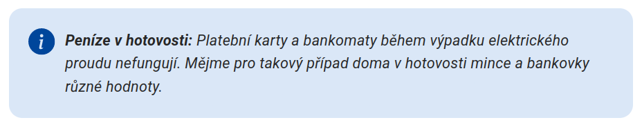 Tuto radu: nedala ziadna pofiderna firma, ale Ministerstvo vnitra CR, ktore vydalo oficialnu papierovu a webovu prirucku "Jak se připravit a společně zvládnout krizovou situaci", kde v sekcii Když vypadne elektrický proud to tam je.eman píše: pon lis 10, 2025 6:53 amJenže ty články jsou často jenom marketingová masáž karetních firem. Ty v ČR hýkají blahem, jak jsou Češi "pokrokový" a sežerou jim všechno co vymyslí, aby vydělali další poplatečky a prodražili tak zboží....JozefSK píše: ned lis 09, 2025 11:53 amAsi sem, v mediach nas neustale presviedcaju, ake squele je vsade platit kartou, internetbankingom ...
