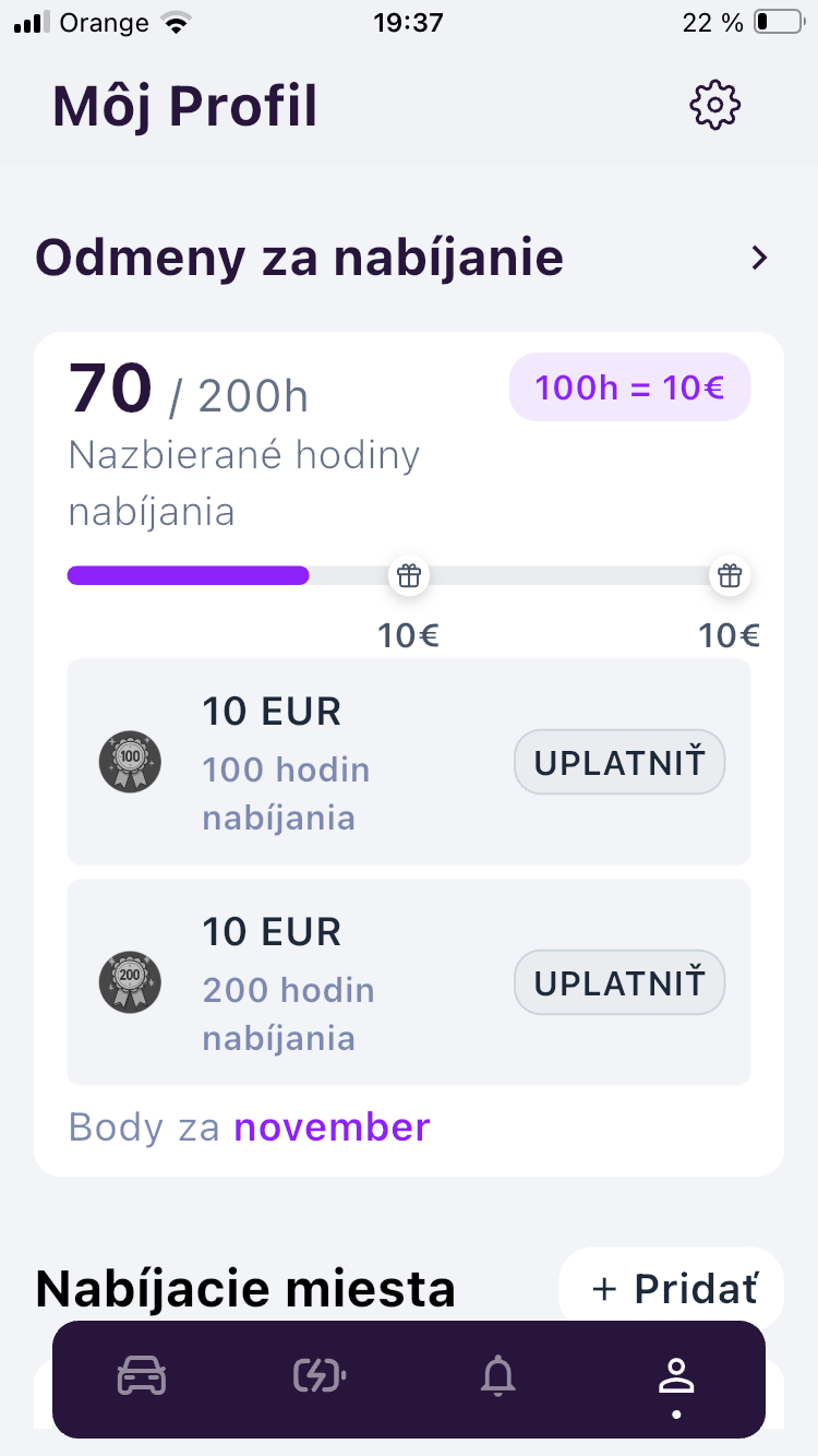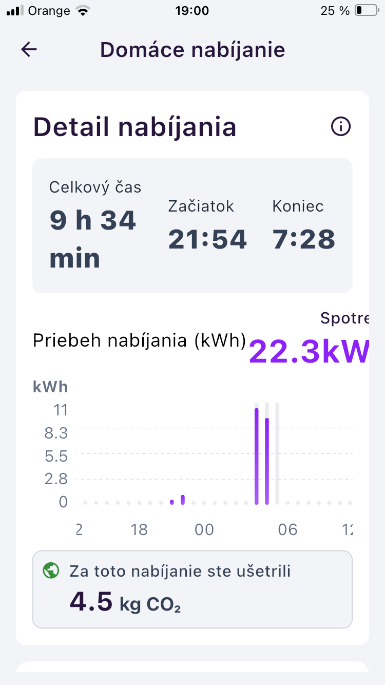 Ale tých 100 (alebo 200 max) hodín treba dosiahnuť v jednom kal. mesiaci, do ďalšieho sa neprenášajú! Ak si ale zarobíš ten cashback (10€ alebo 20€), ten sa na účte kumuluje. Pri mojom pomalom nabíjaní z 20% na 80% to je 12 hodín nabíjania, ak dobre chápem graf v appke, tak smart nabíjanie beží len od 19:00 do 7:00, čo by bolo natesno.