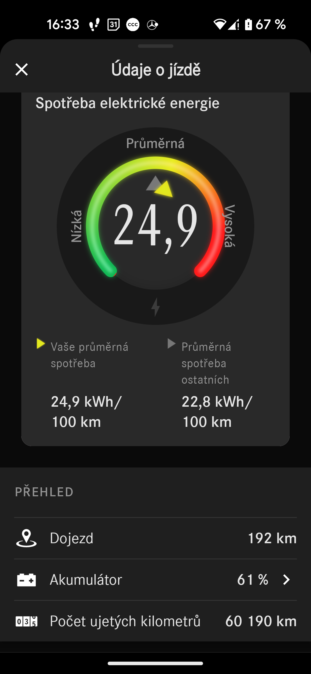 To zní logicky s tím dobíjením na levnější tarif versus promrzlé auto v době levnějšího tarifu, ale asi to bude o nějakém kompromisu.glottis píše: pon pro 01, 2025 3:46 pmrychlost a topeni zveda spotrebu. Kratke trasy, co v lete jdou golfem jet za 10, tak v zime 20+. Zimni popojizdky kilak tam a zpatky to pak ukaze klidne 30. Delsi trasa je pak lepsi.