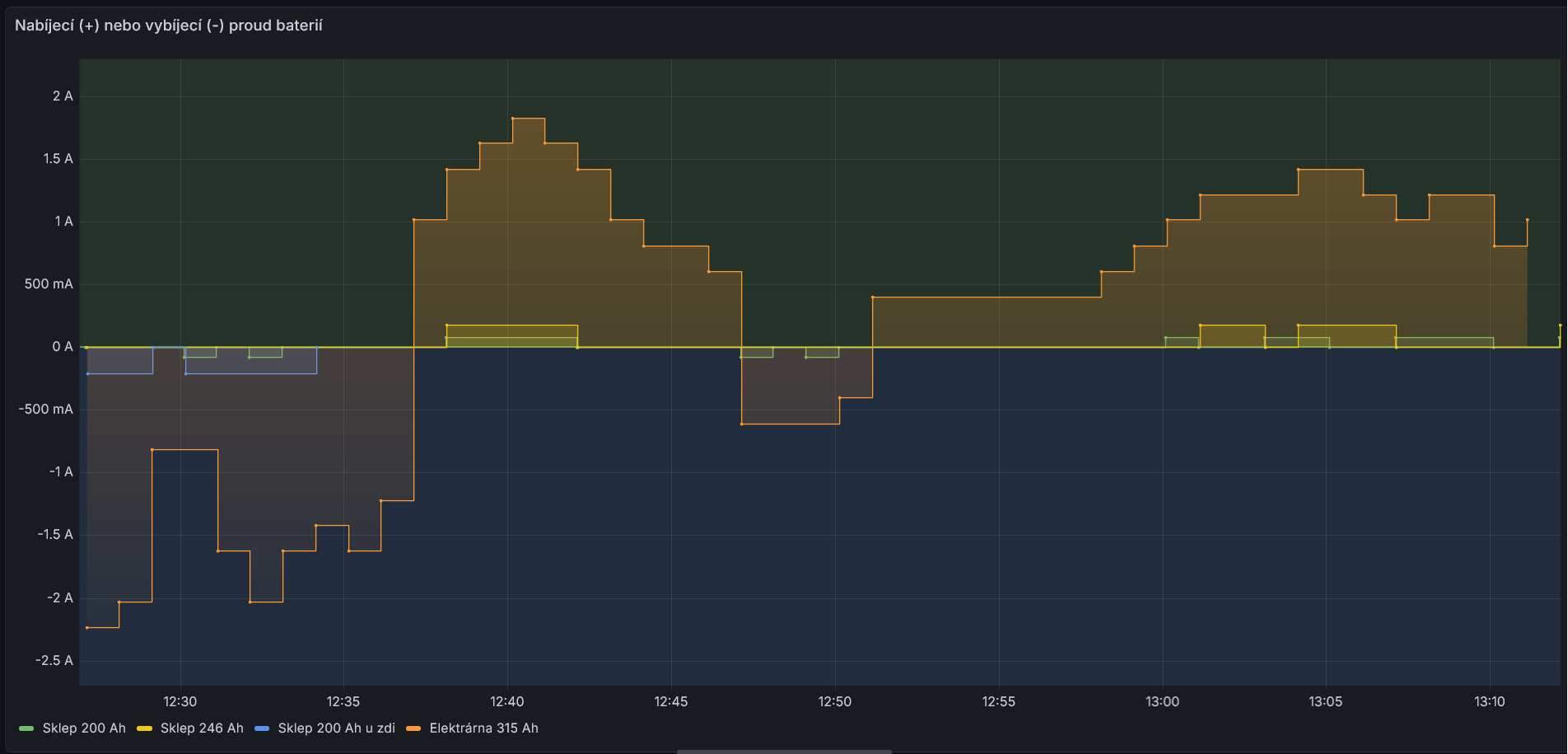 JK BMS měří i nižší proudy. Asi rozhoduje, na jaké max. proudy je stavěná. U mě to pak vypadá třeba takto: