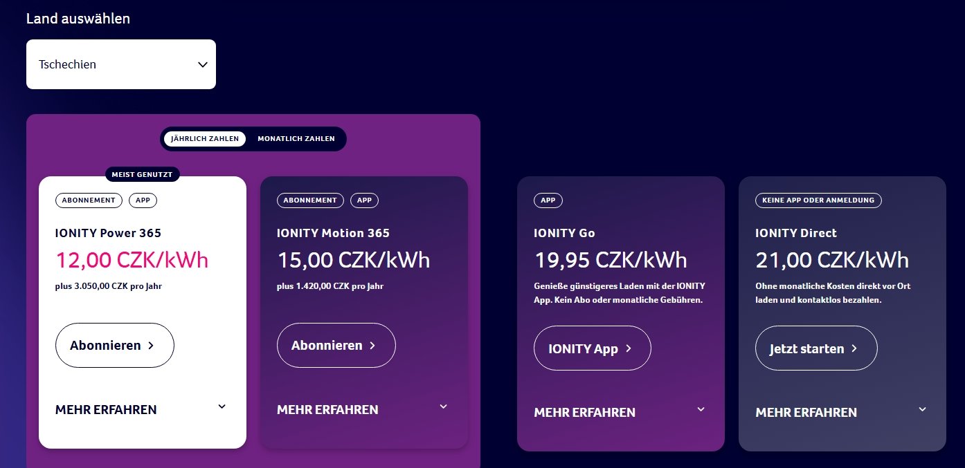 Na tohle si ale musíš platit nějaký ten tarif - podle ty ceny - ten nejvyšší - chápu to dobře ? U IONITY