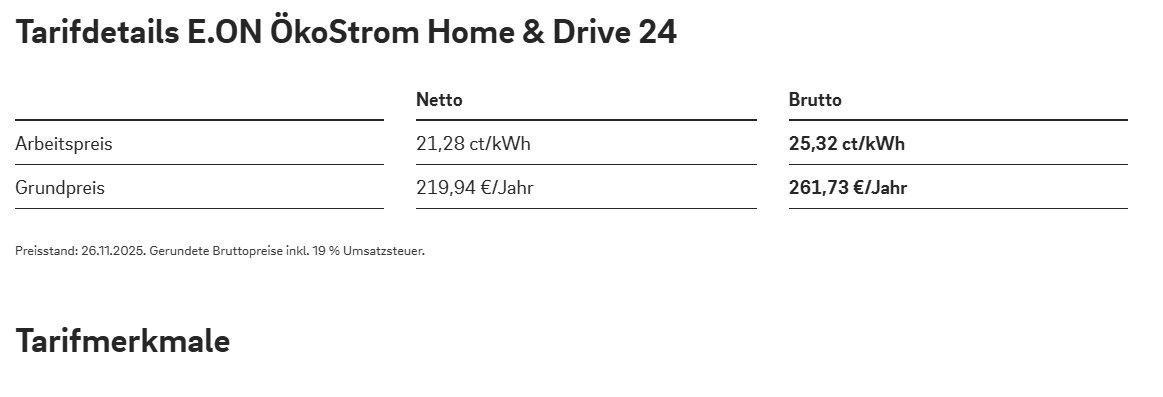 Další výhoda se promítne domů na tarif a elektroměr ( u E.On doma) - DOMÁCNOST + E-AUTO = výhodnější tarif i na elektroměr, kde mě spadne cena (při ty smlouvě na 2 roky) z 0,43Euro až na 0,25Euro (bez poplatků) a dalších 240 Euro bonus za druhou smlouvu na 24 měsíců (10Eur/měs.)