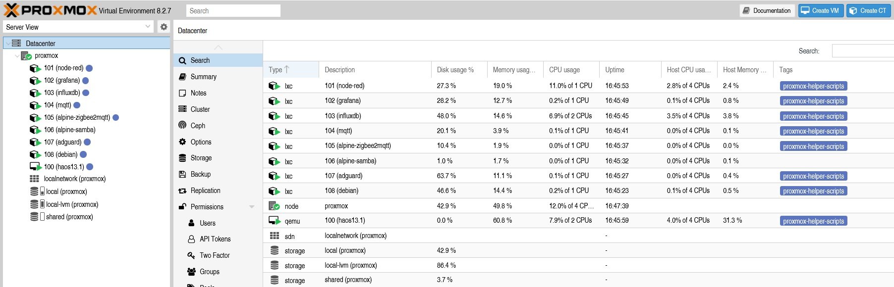 2. vidim ze doplnky ako influx, mqtt, grafana atd mas v lxc kontajneroch.