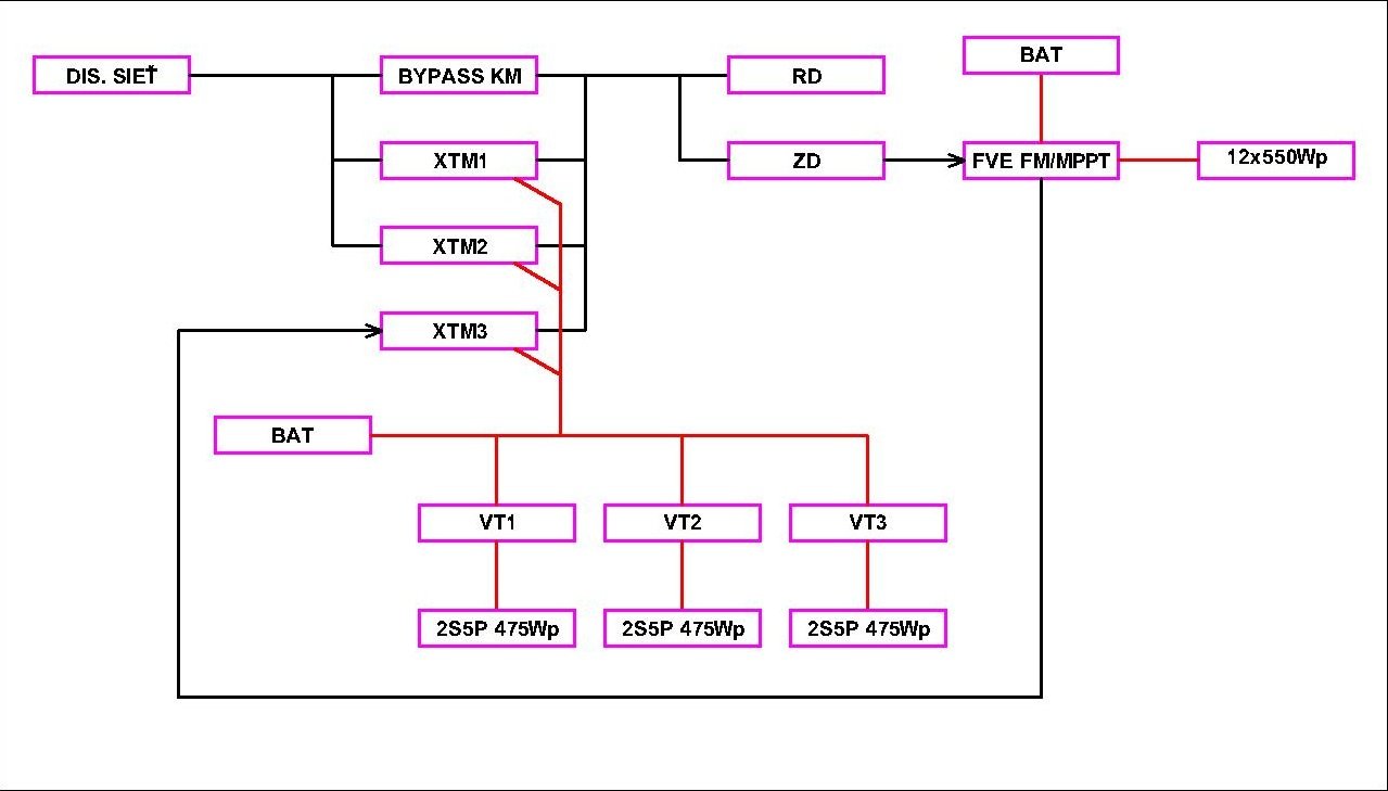 Založenú na Studeri, 3x XTM4000-48, 3x VT80, 30x 475Wp panely, baterka 1184Ah.