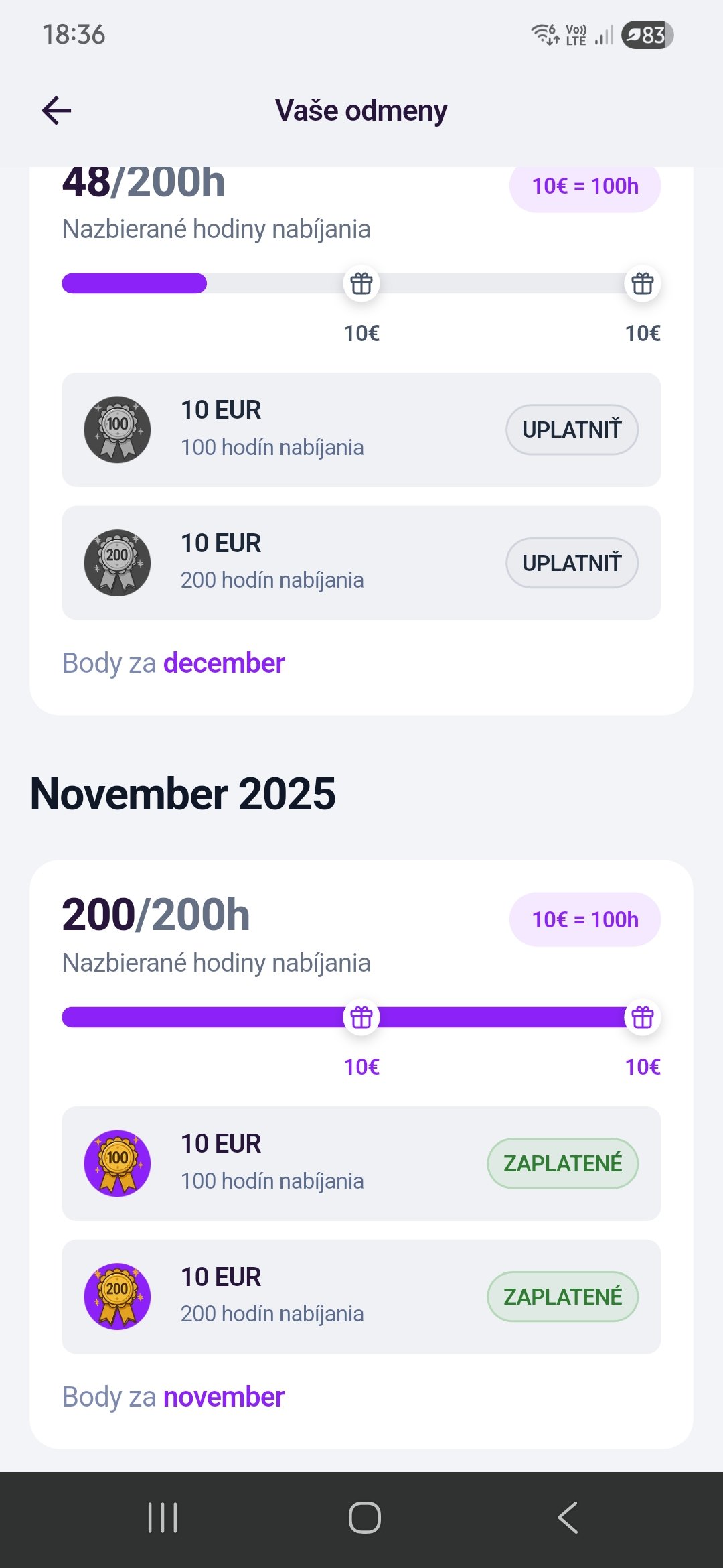 Nechváľ sa, ja mám 200 nefunkčných bodov.TomHC píše: stř lis 12, 2025 8:31 amUž sa to blížiPočítajú sa hodiny, keď je auto pripravené nabíjať a odľahčiť sieť od prebytku elektriny. Nie je dôležité, koľko sa reálne nabije. Teoreticky si viete nastaviť na wallboxe 6A a mať ho pripojený celý deň a nazbierať hodiny relatívne rýchlo.